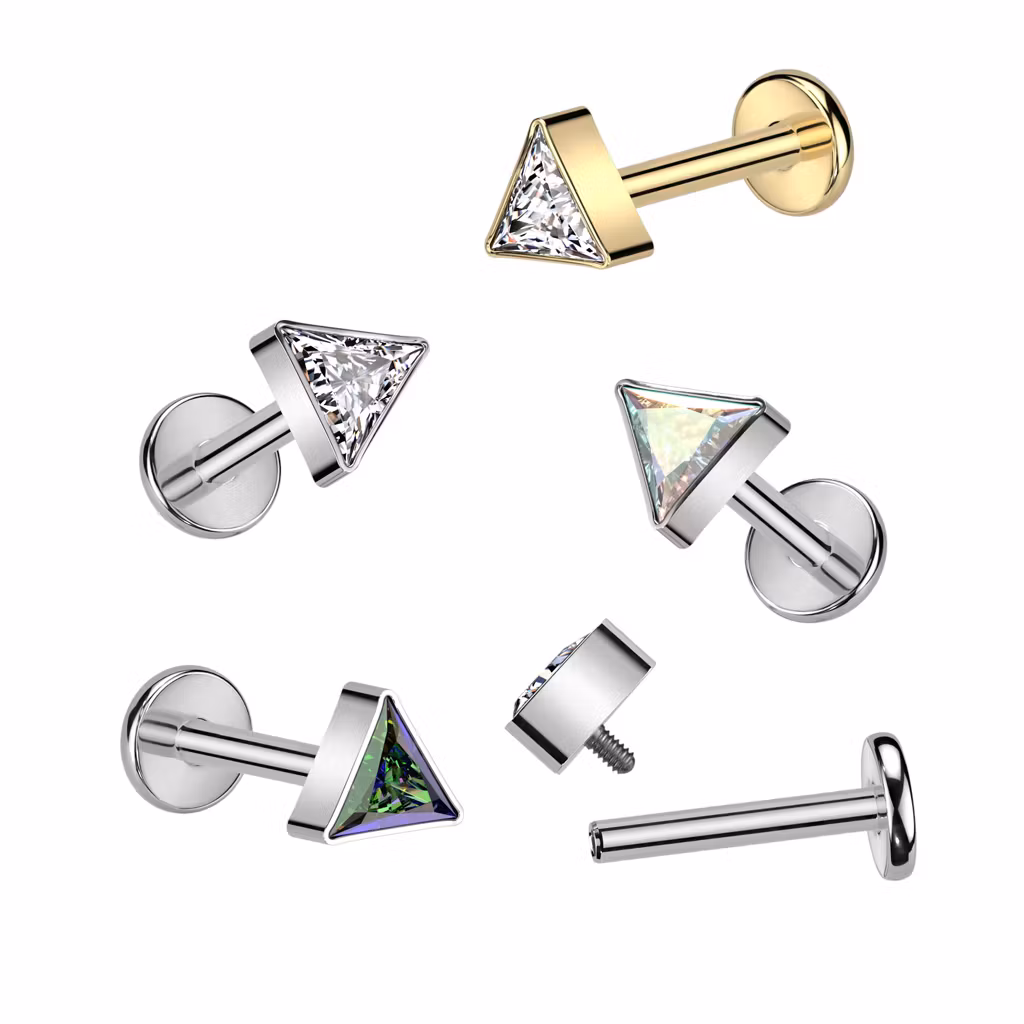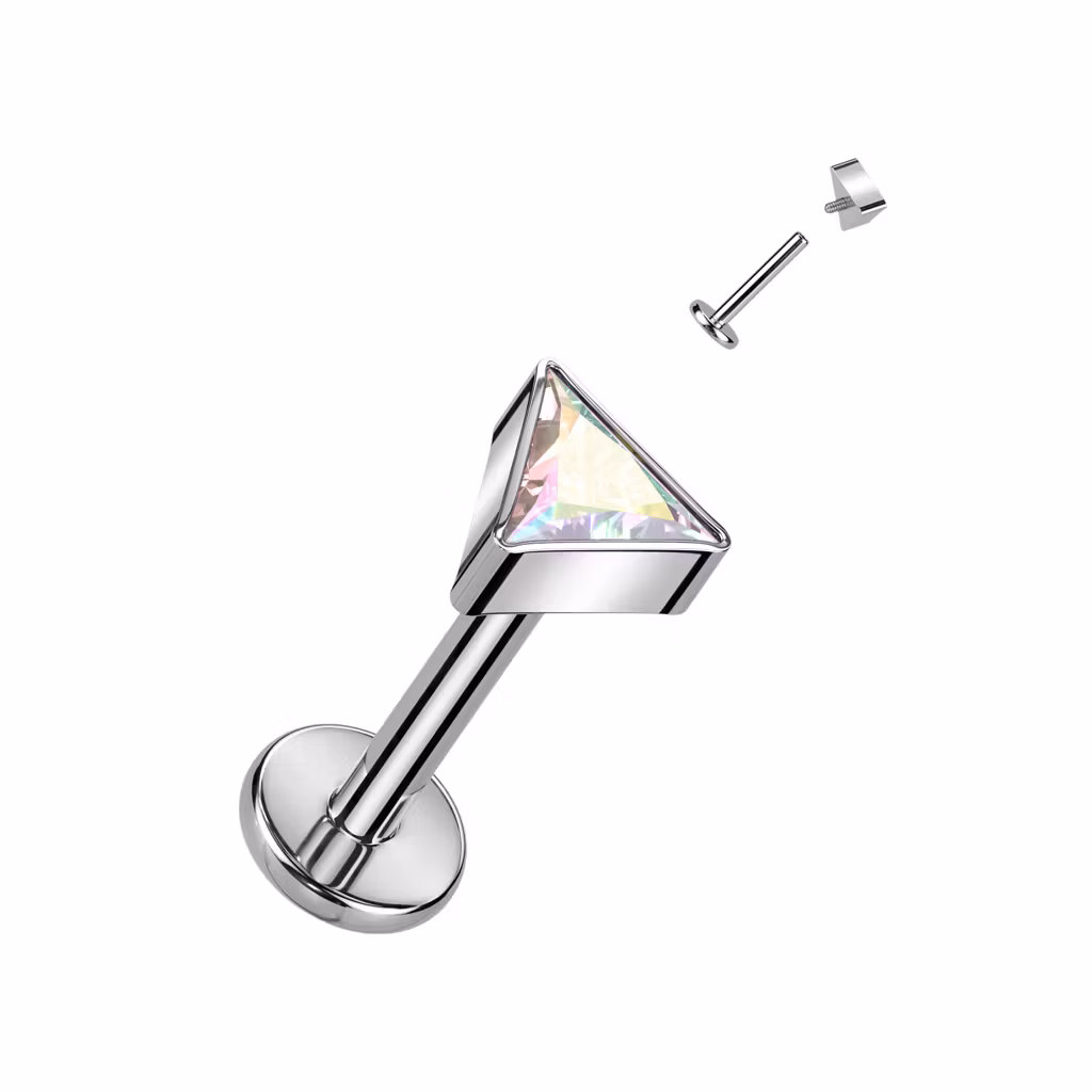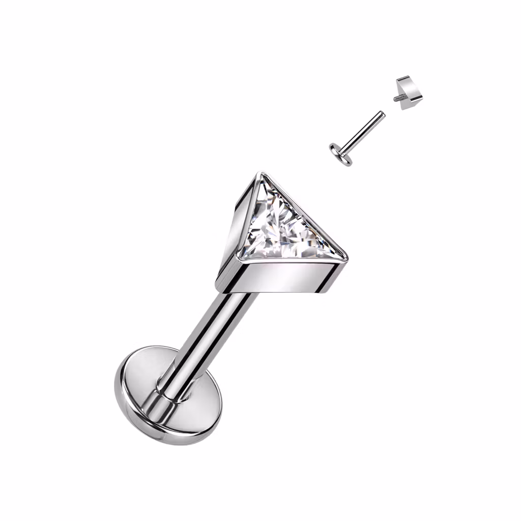 Labret / flat back piercing i titanium 1,2mm - Trekantig topp med kubisk zirconia