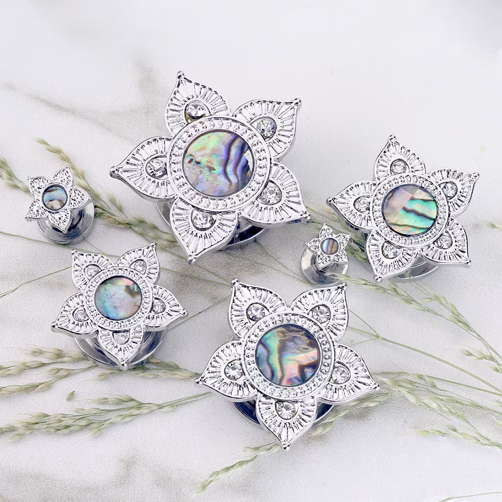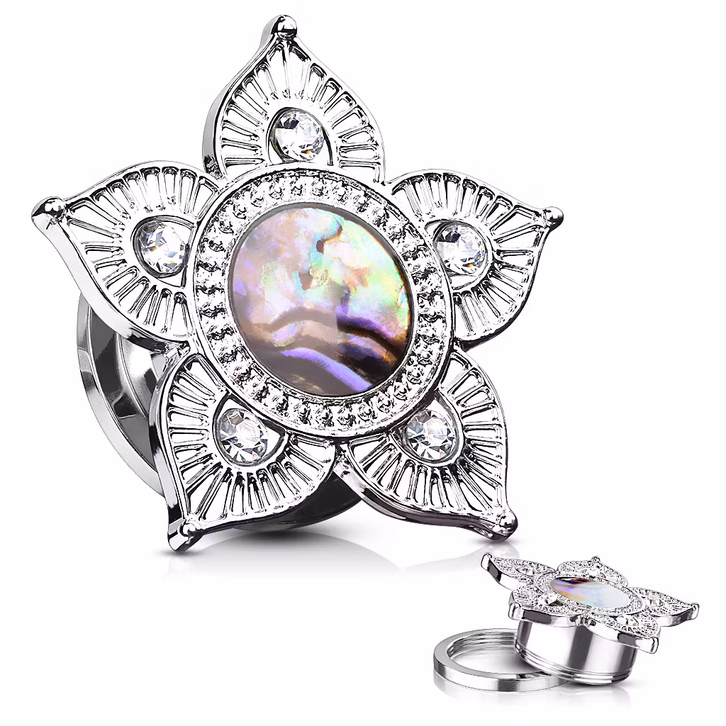 Plugg / töjning med tribalblomma och pärlemorinlägg (3-16mm)