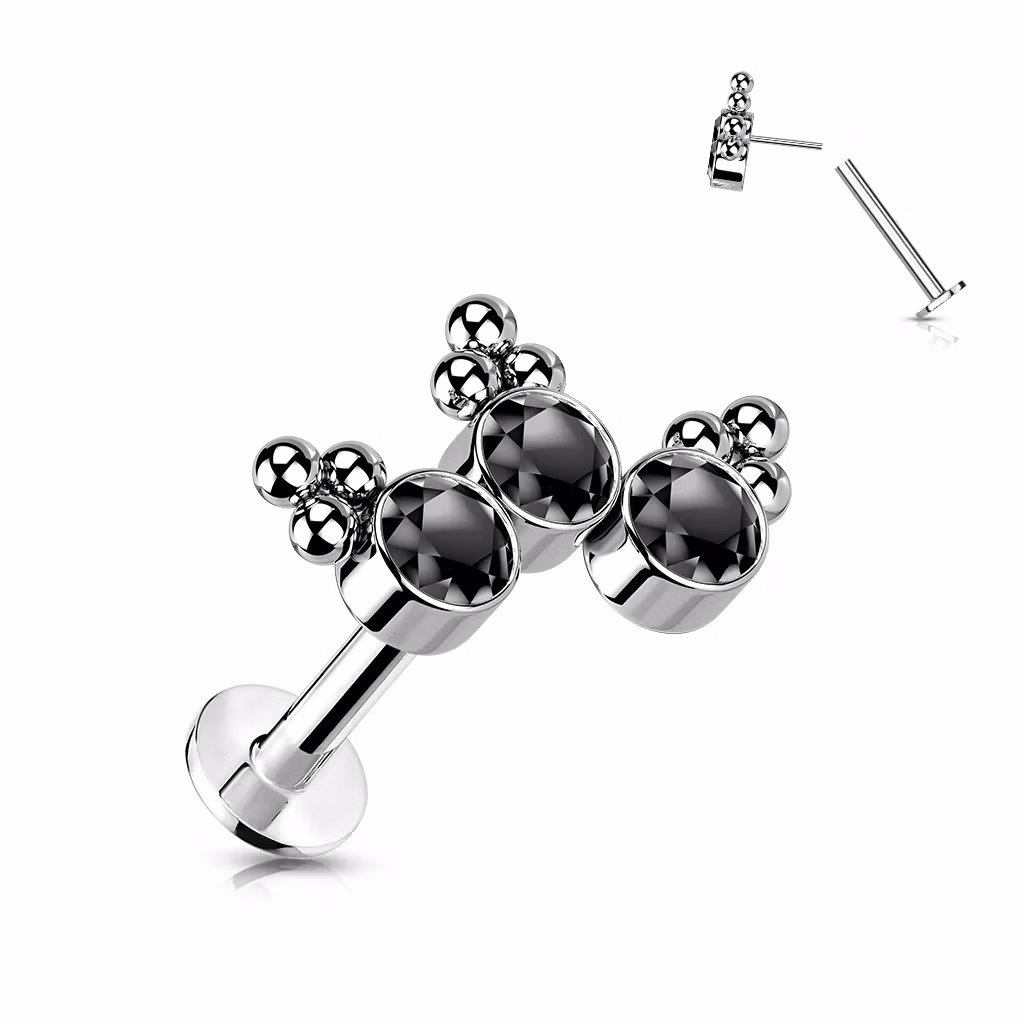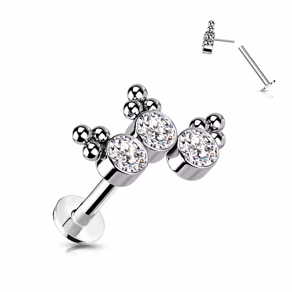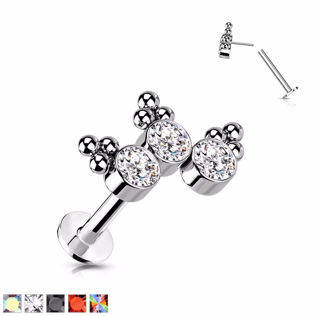 Labret in titanium 1.2mm Threadless flat back piercing - Top with cluster and cubic zirconia
