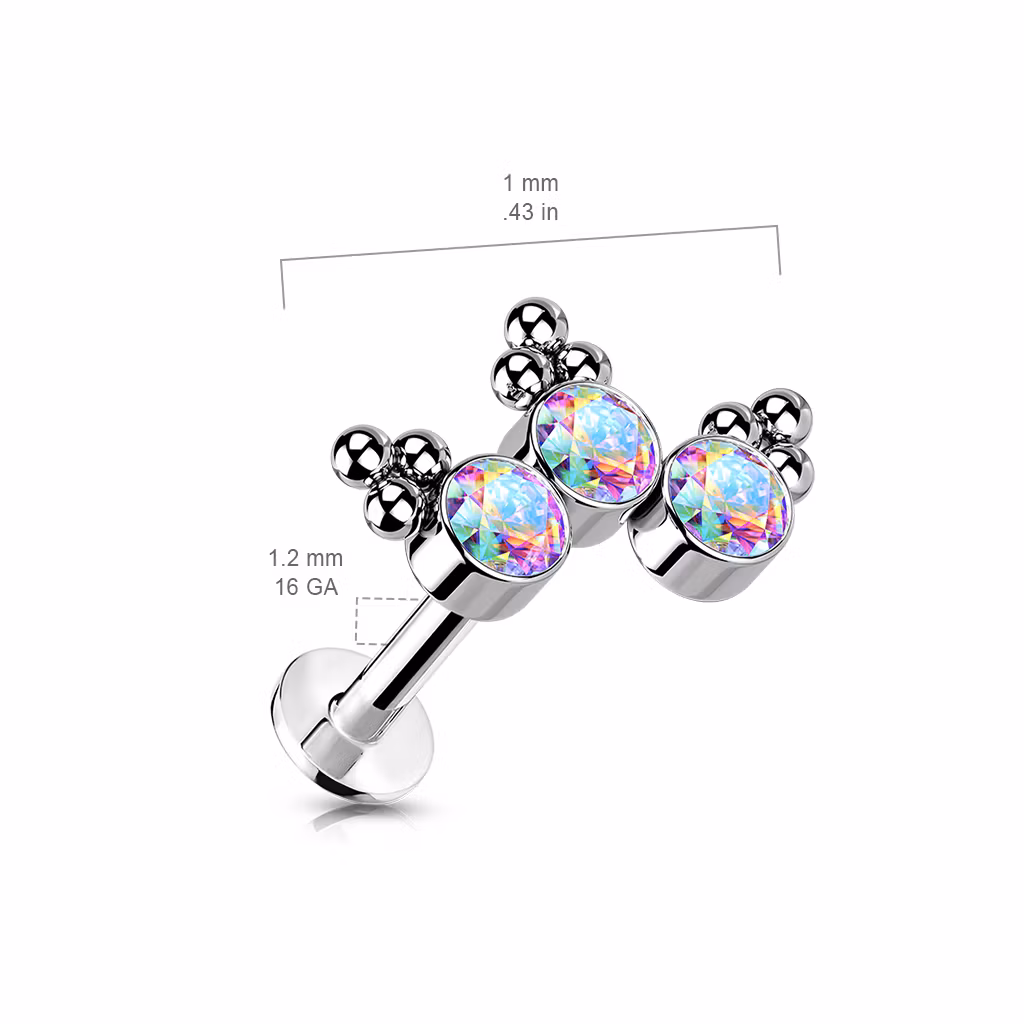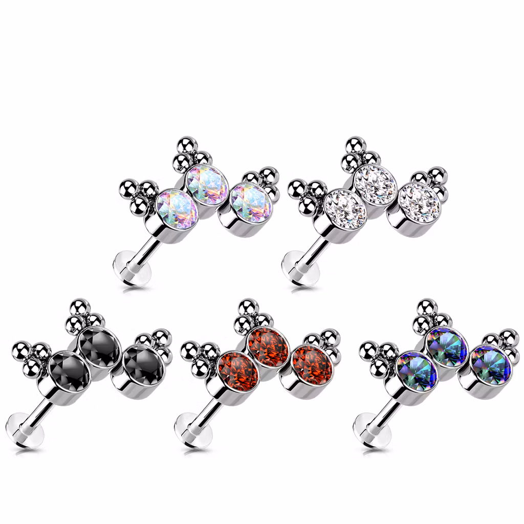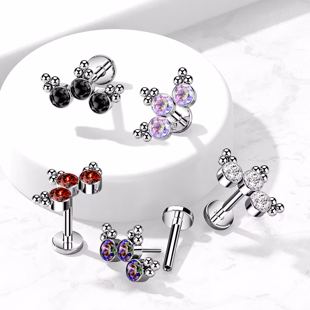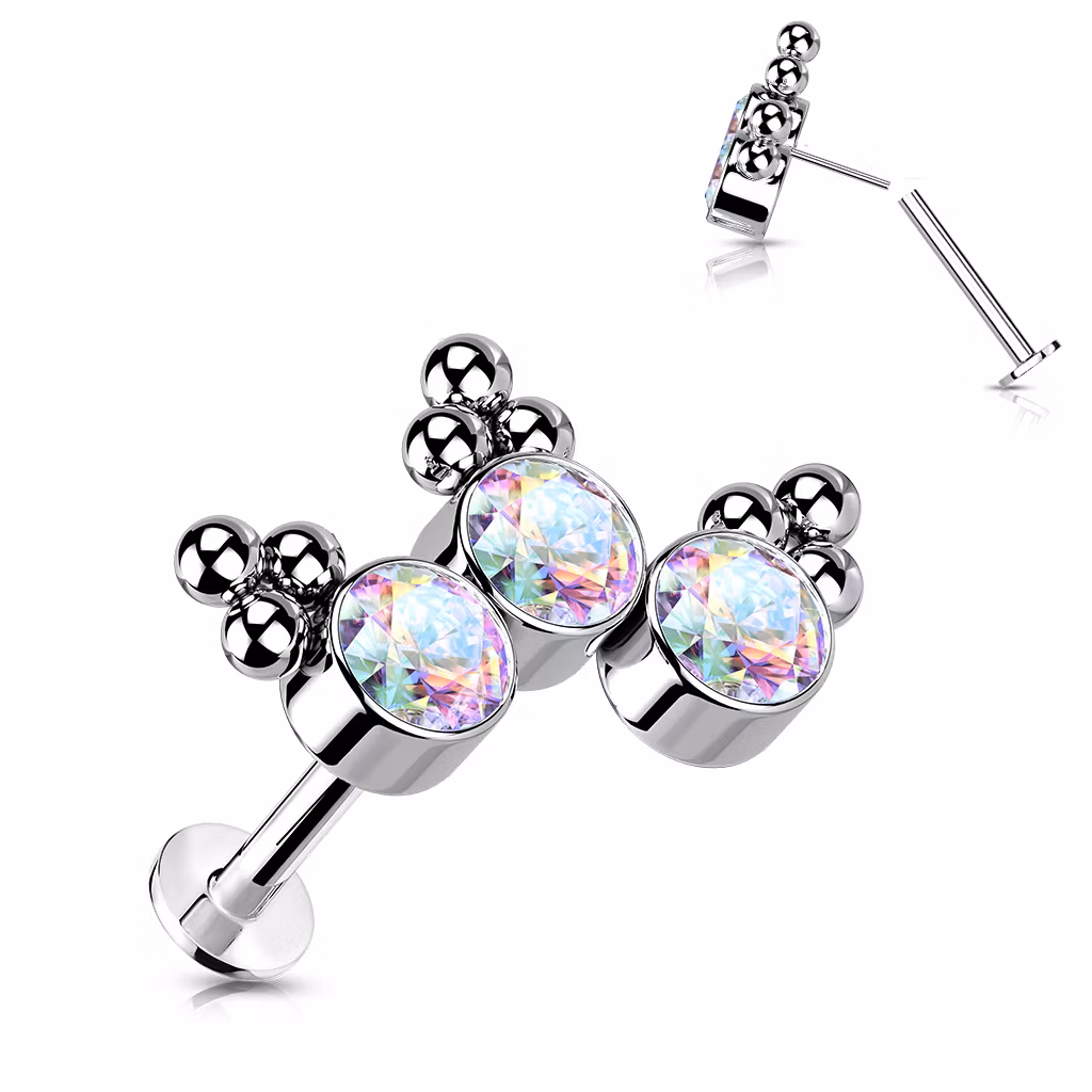 Labret in titanium 1.2mm Threadless flat back piercing - Top with cluster and cubic zirconia