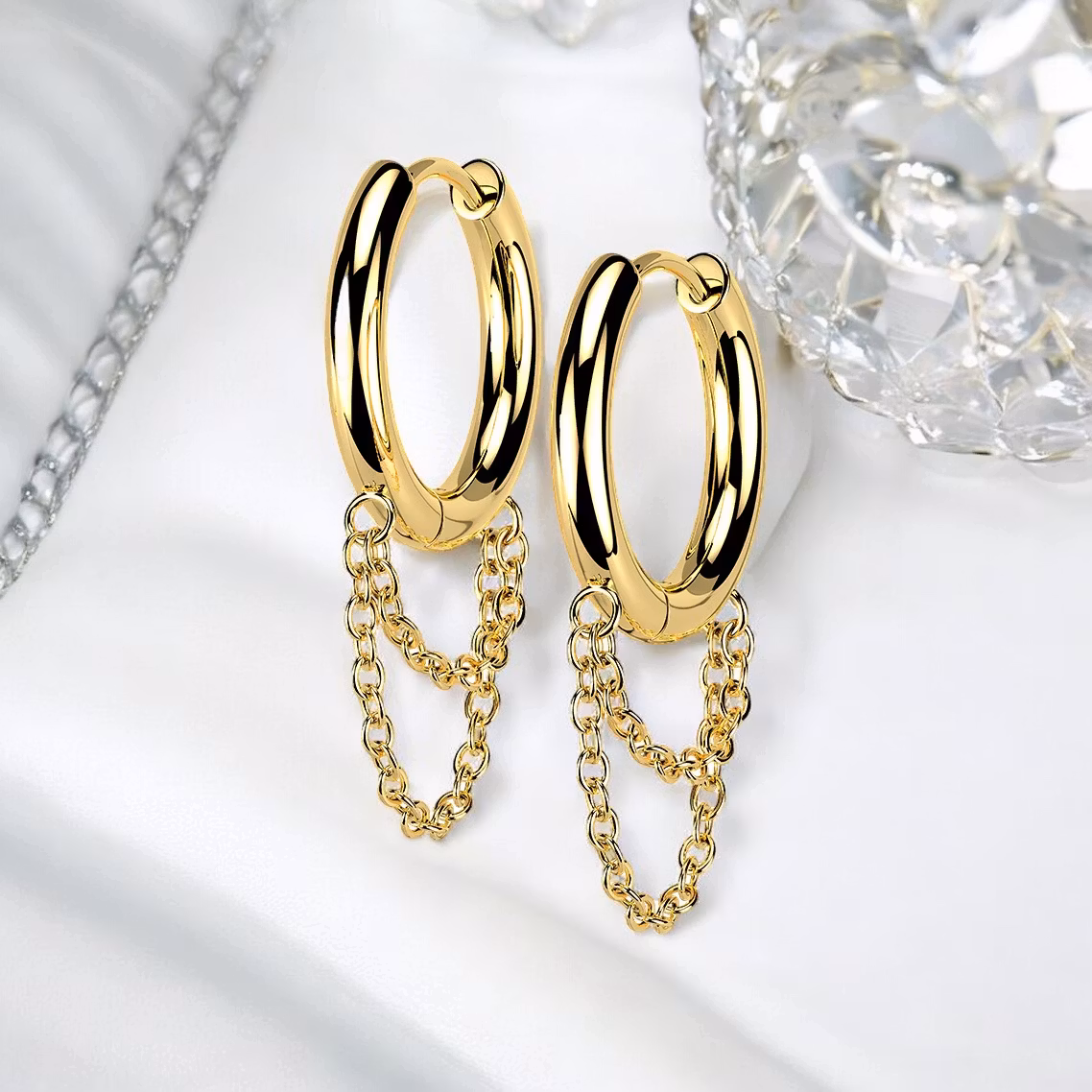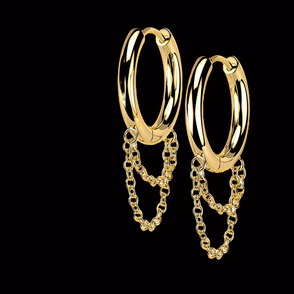 Stainless steel gold plated huggie with double chains (sold in pairs)