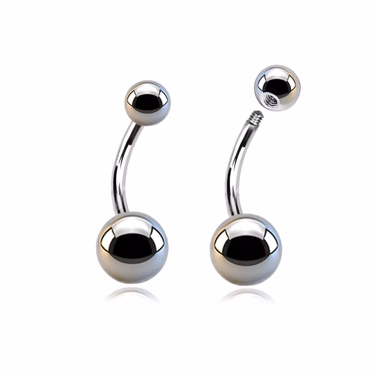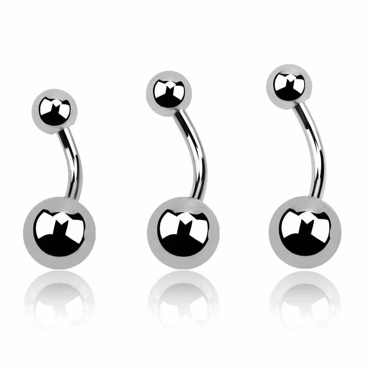 Banana navelsmycke.SS316L kirurgiskt stål. Allergivänligt stål.1,6mm tjock med 5mm och 8mm kula. Externt gängad stav.