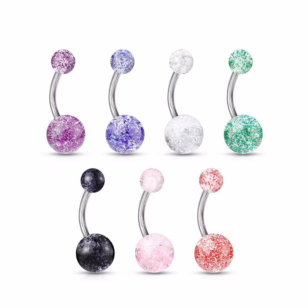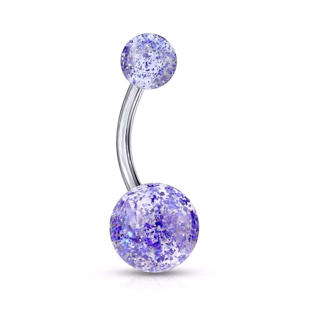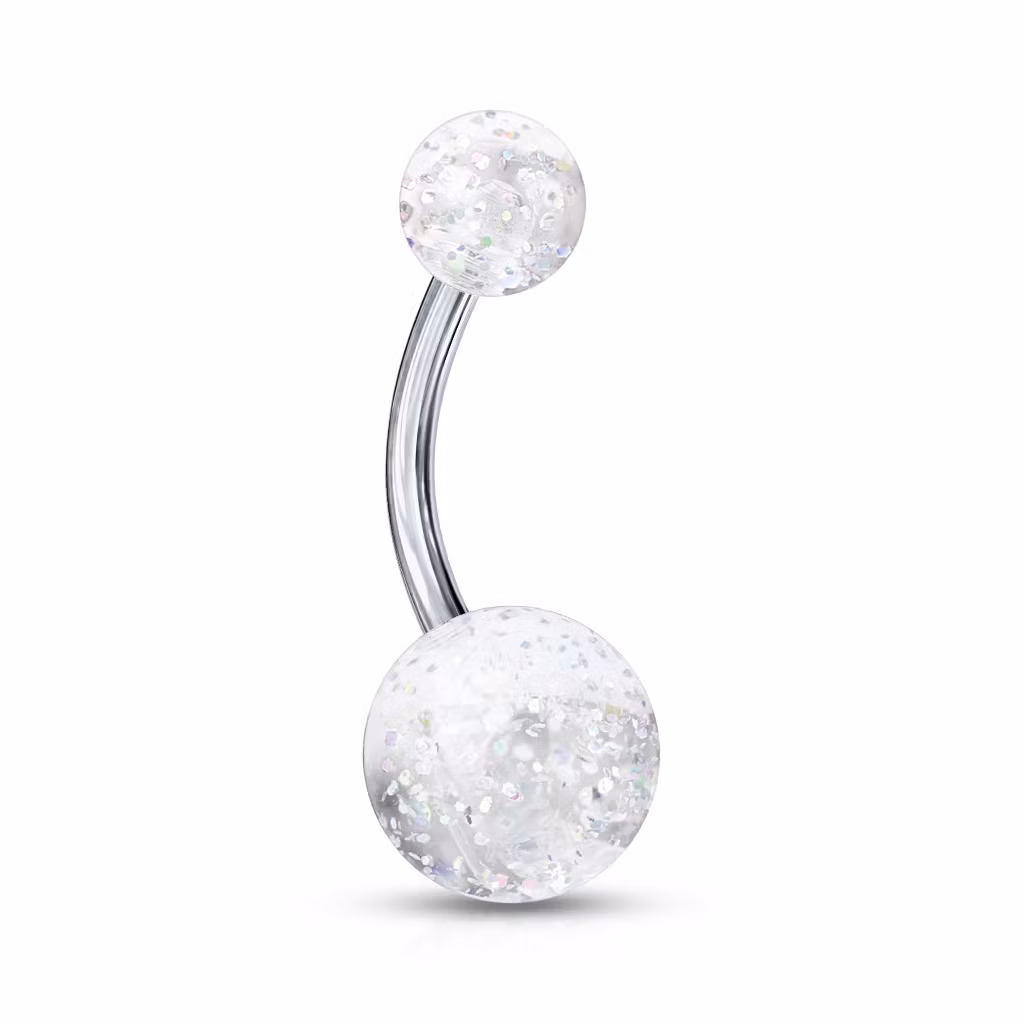 Banana navelsmycke 1,6mm i titanium med 5 & 8mm glitterkulor
