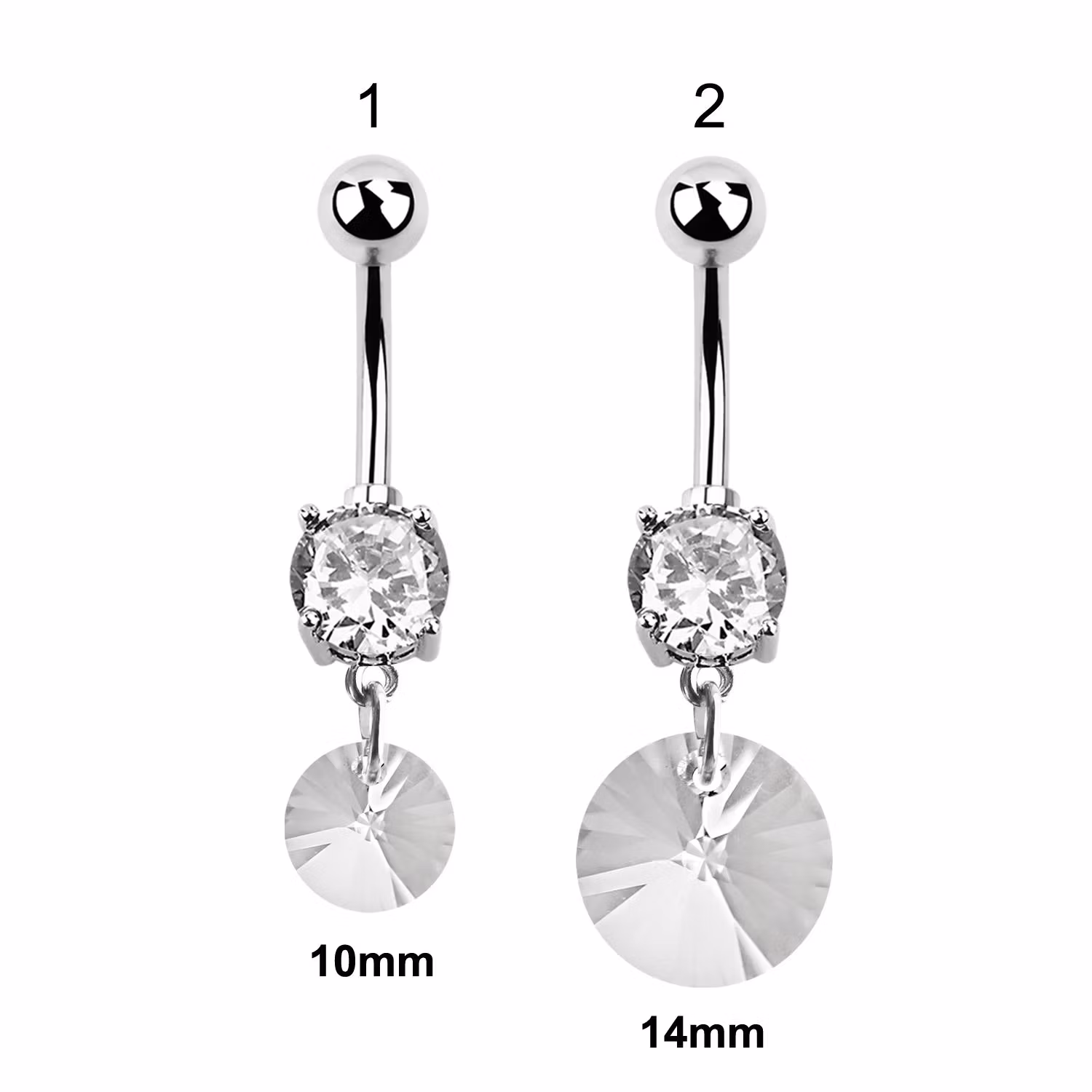 Navelsmycke banana 1,6mm med stor rund klar sten