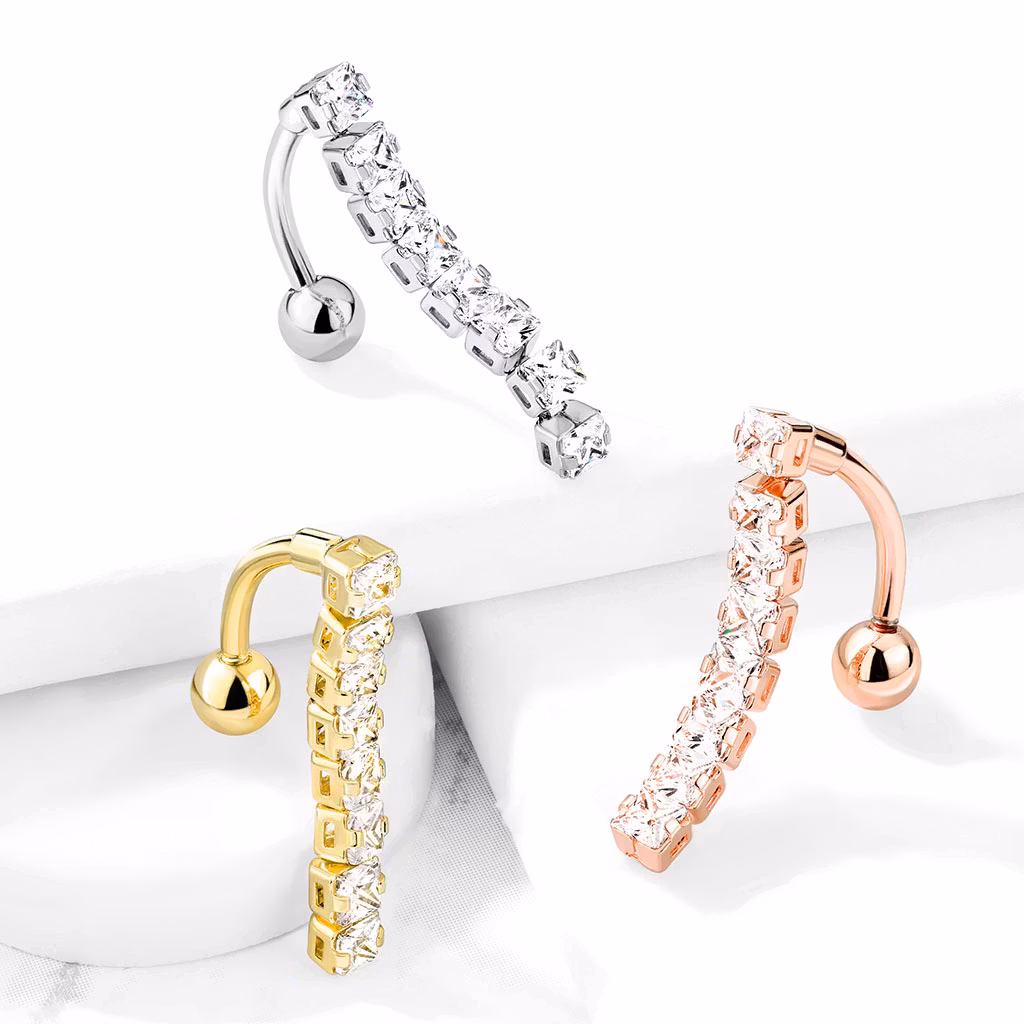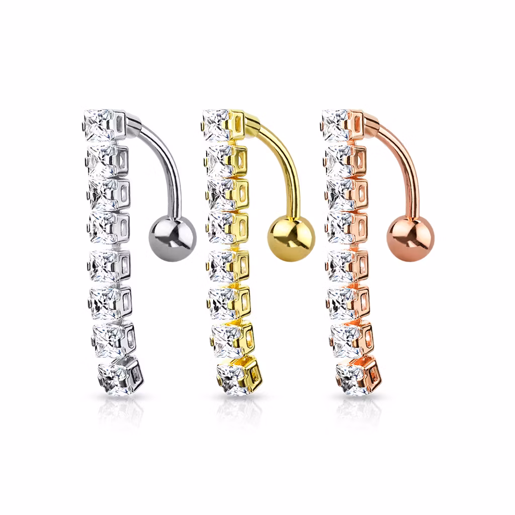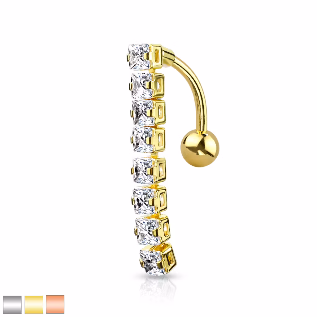 Navelsmycke banana 1,6mm drop down med 8st fyrkantiga kubisk zirconia