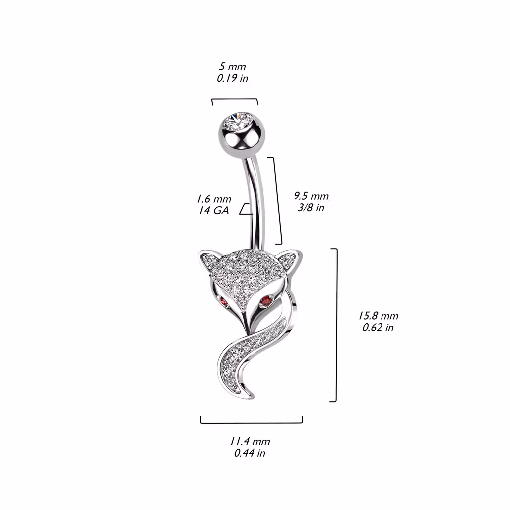 Navelsmycke banana 1,6mm - Räv med kubisk zirconia