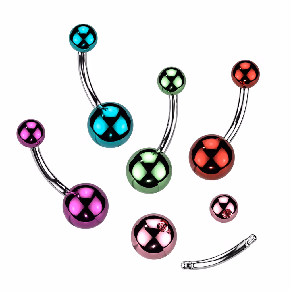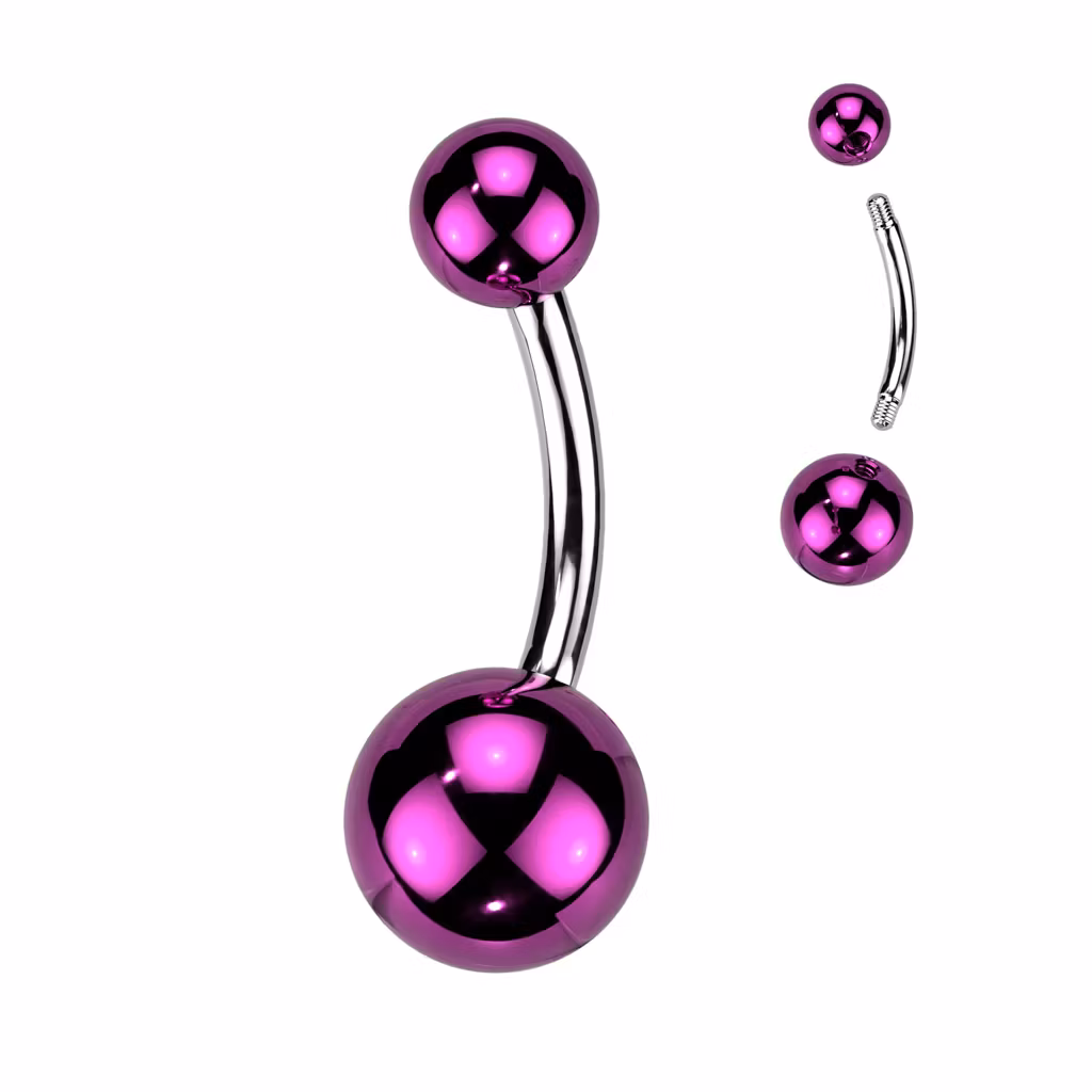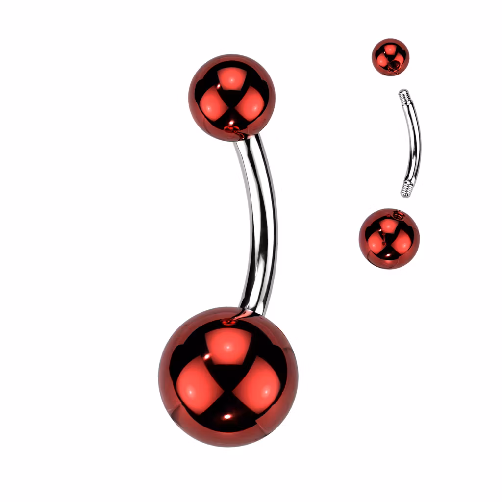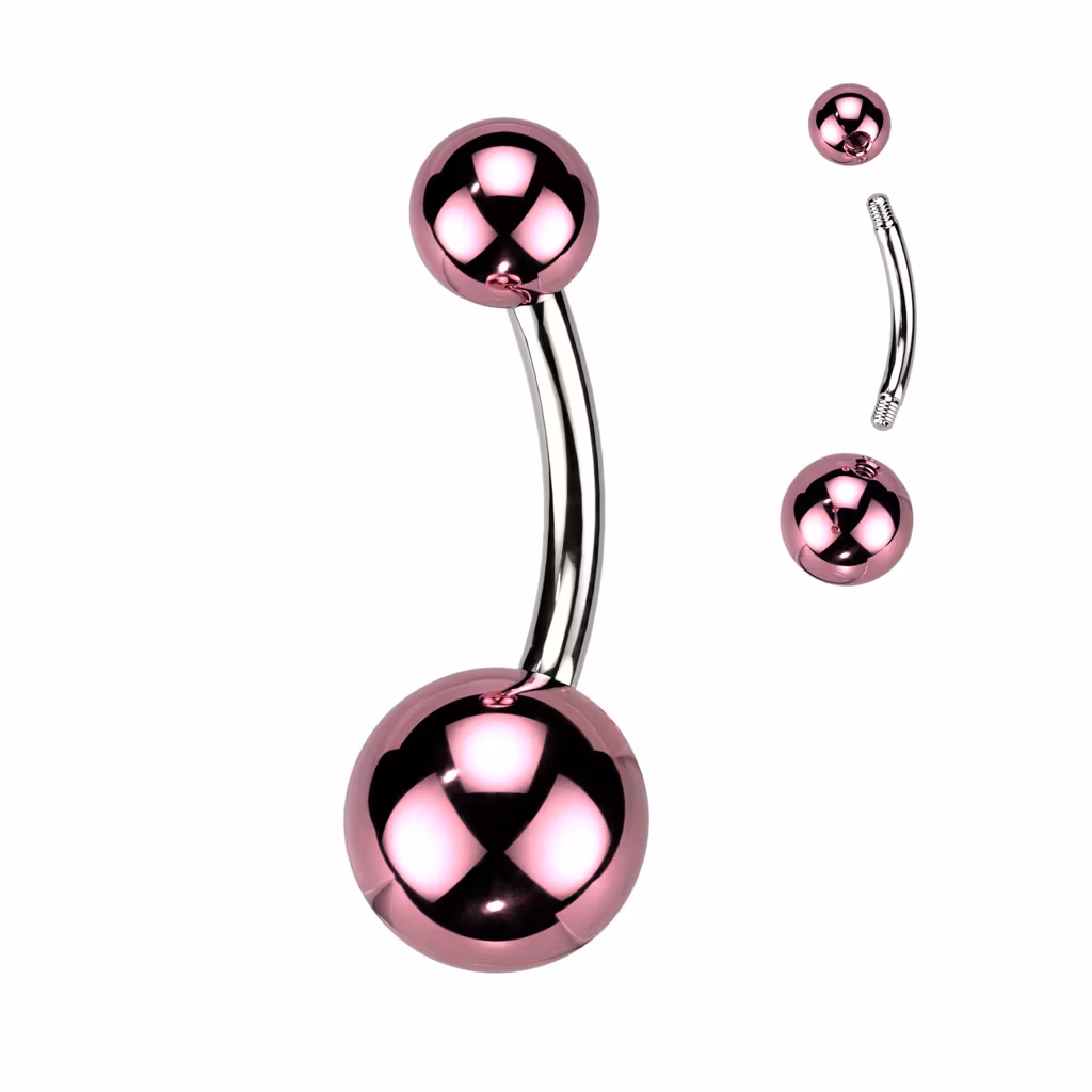 Navelsmycke / banana i kirurgiskt stål 1,6mm med 5mm- & 8mm metallickulor