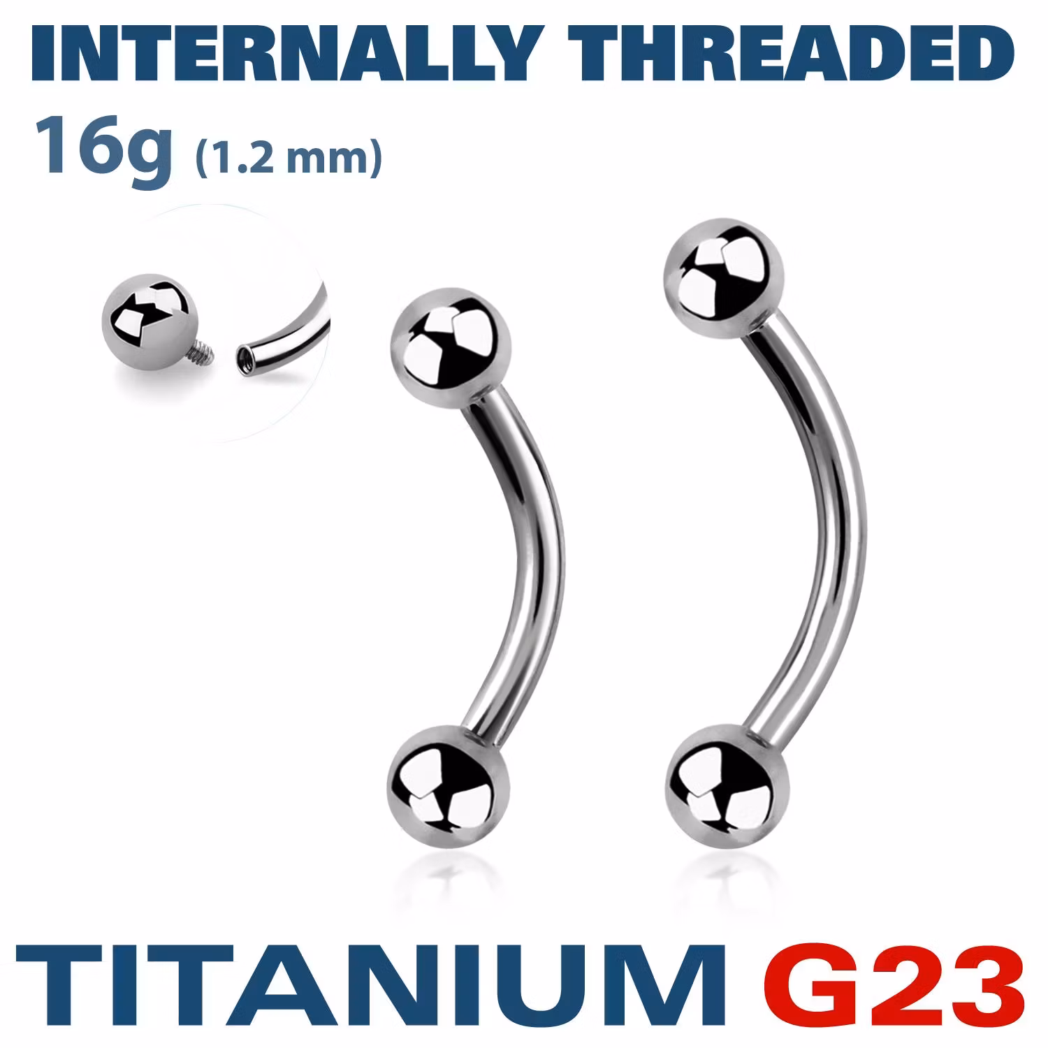 Invändigt gängad banana / böjd stav i implantatsäker ASTM-F136 Grade 23 Titan. 16gauge - 1,2mm. 3mm kulor.