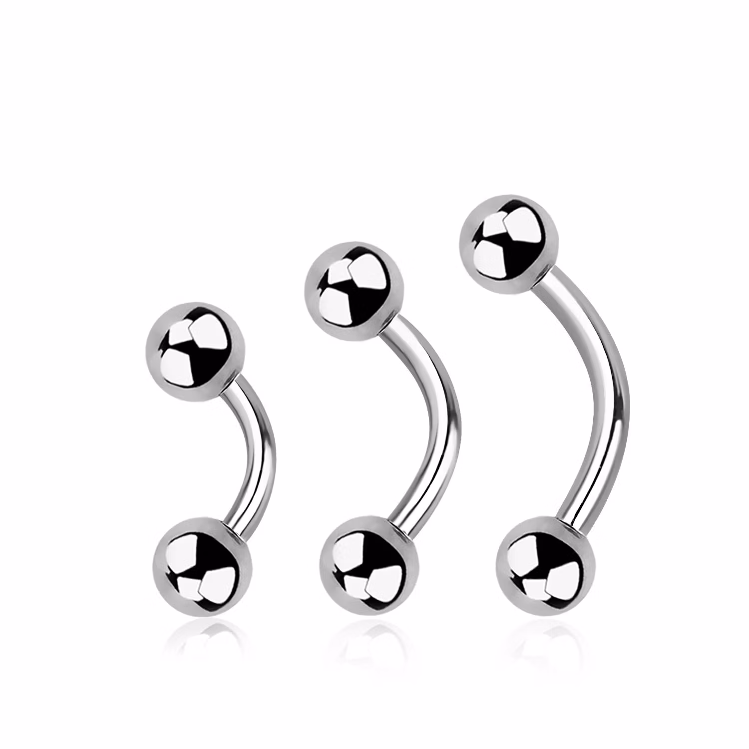 Utvändigt gängad böjd stav i implantatsäker ASTM-F136 Grade 23 Titan. 16gauge - 1,2mm. 4mm kulor. Längden anges rakt över utan kulor och gänga. Passar bland annat rook piercing och piercing i ögonbryn.
