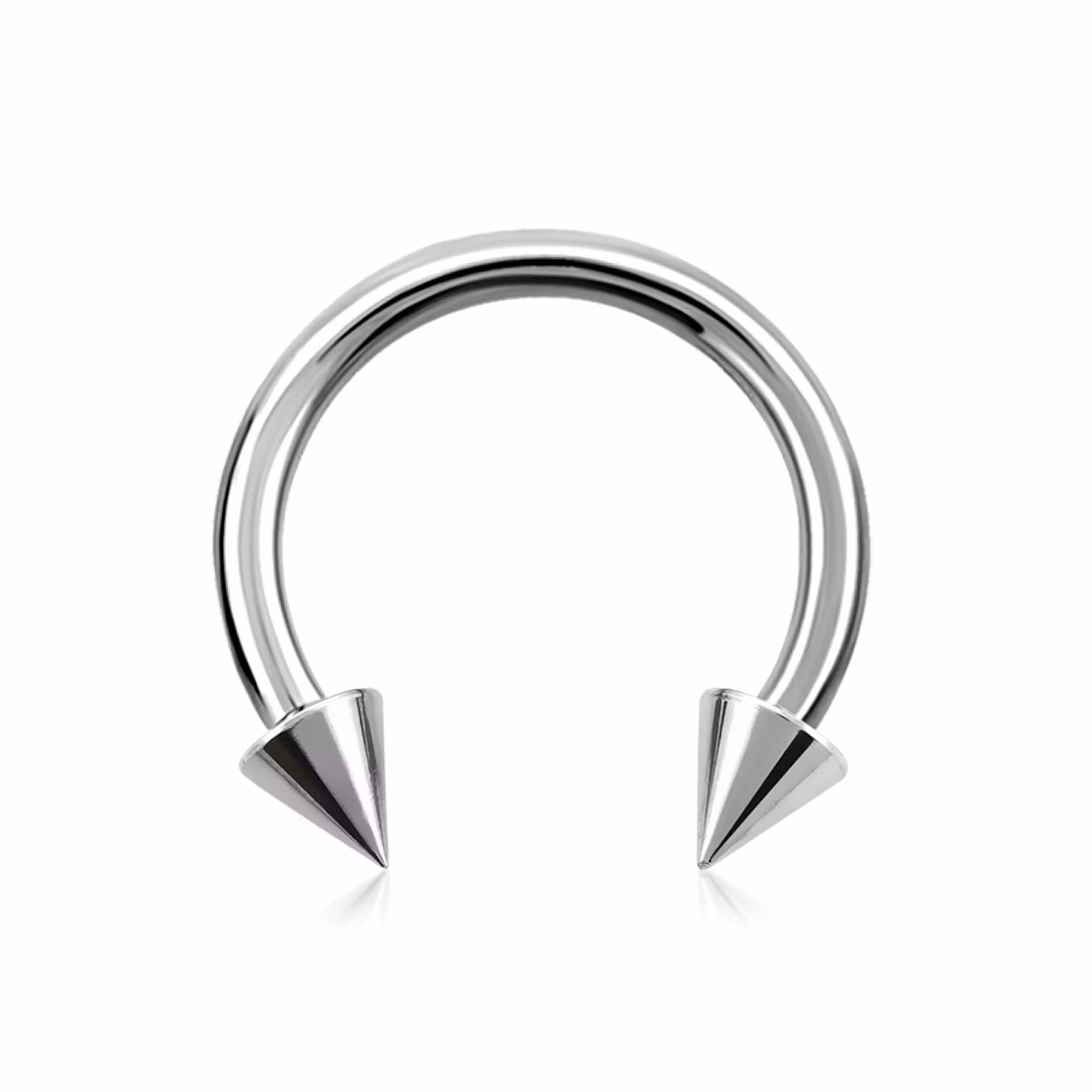 Hästsko / cirkulär barbell (CBR) i 316L kirurgiskt stål. 16gauge - 1,2mm. Extra små 2,5mm konor i vardera ände. Diameter anges som ringen längd / innerdiameter.