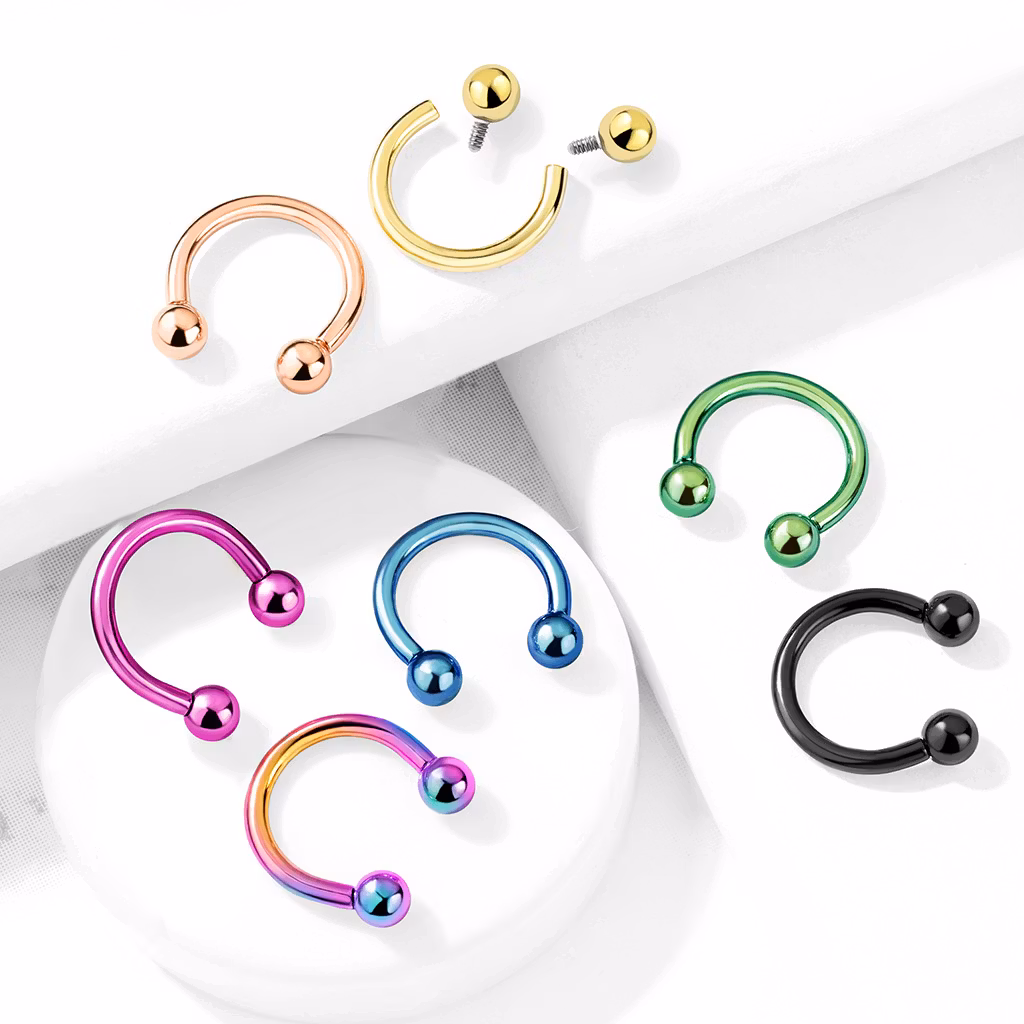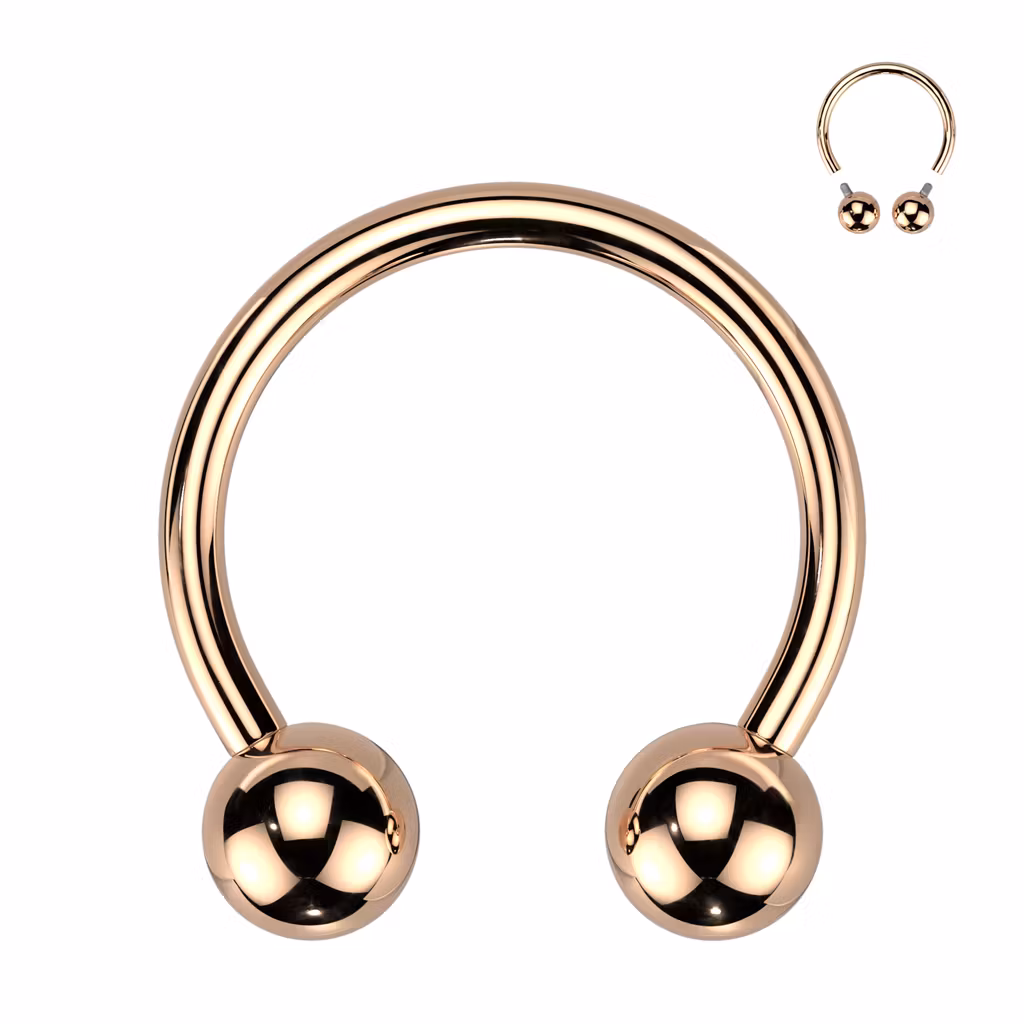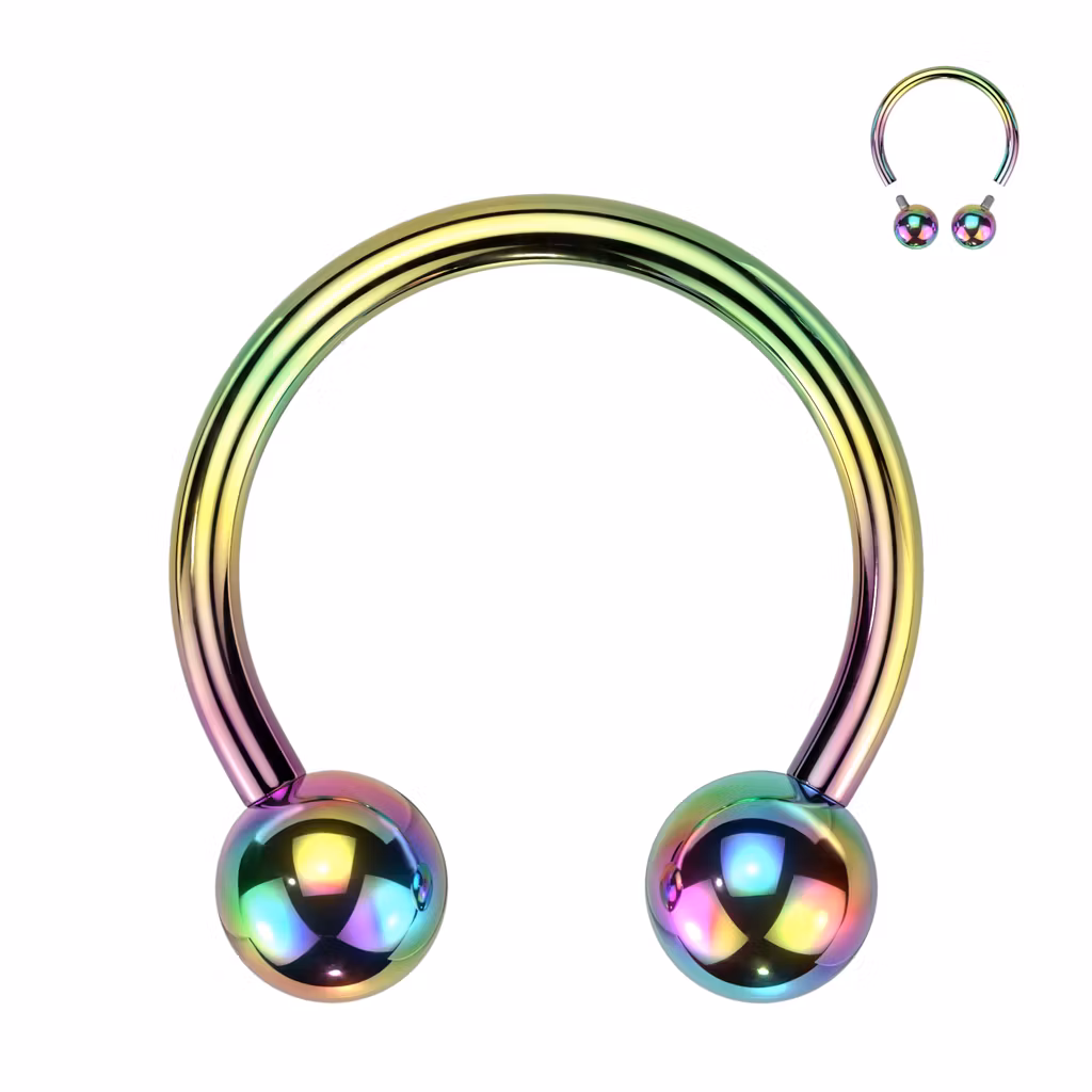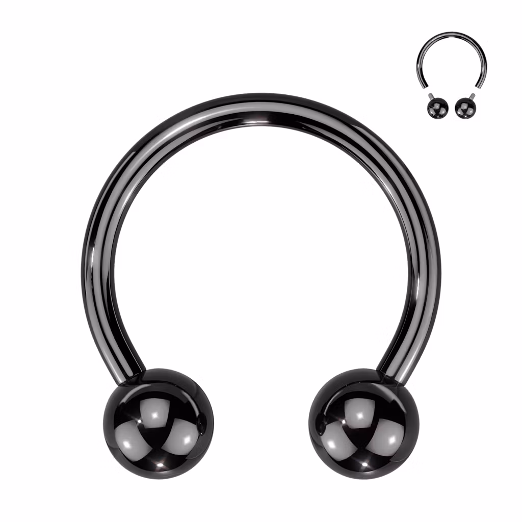 CBR / Hästsko / Cirkulär barbell i implantatsäker PVD-pläterad ASTM-F136 Grade 23 Titanium. Diameter anges som längd / innerdiameter. Invändigt gängad.