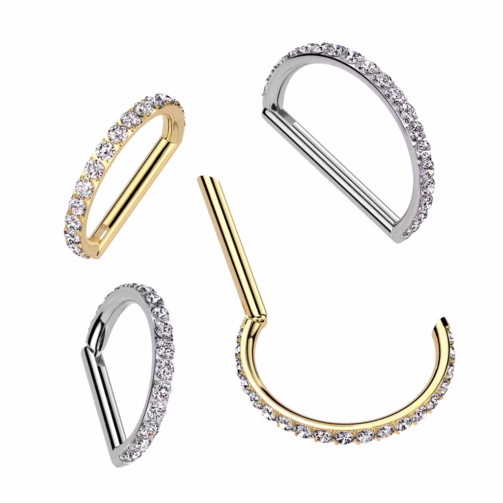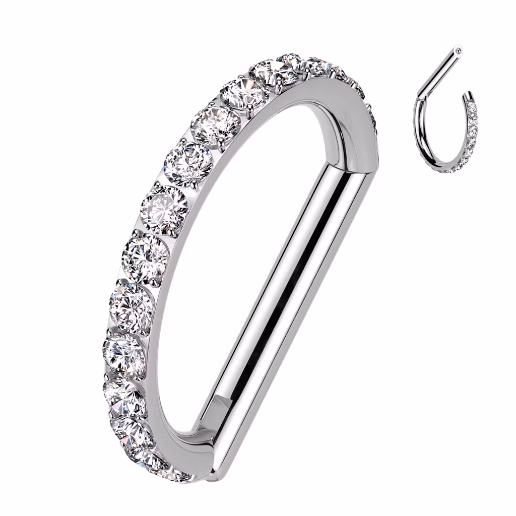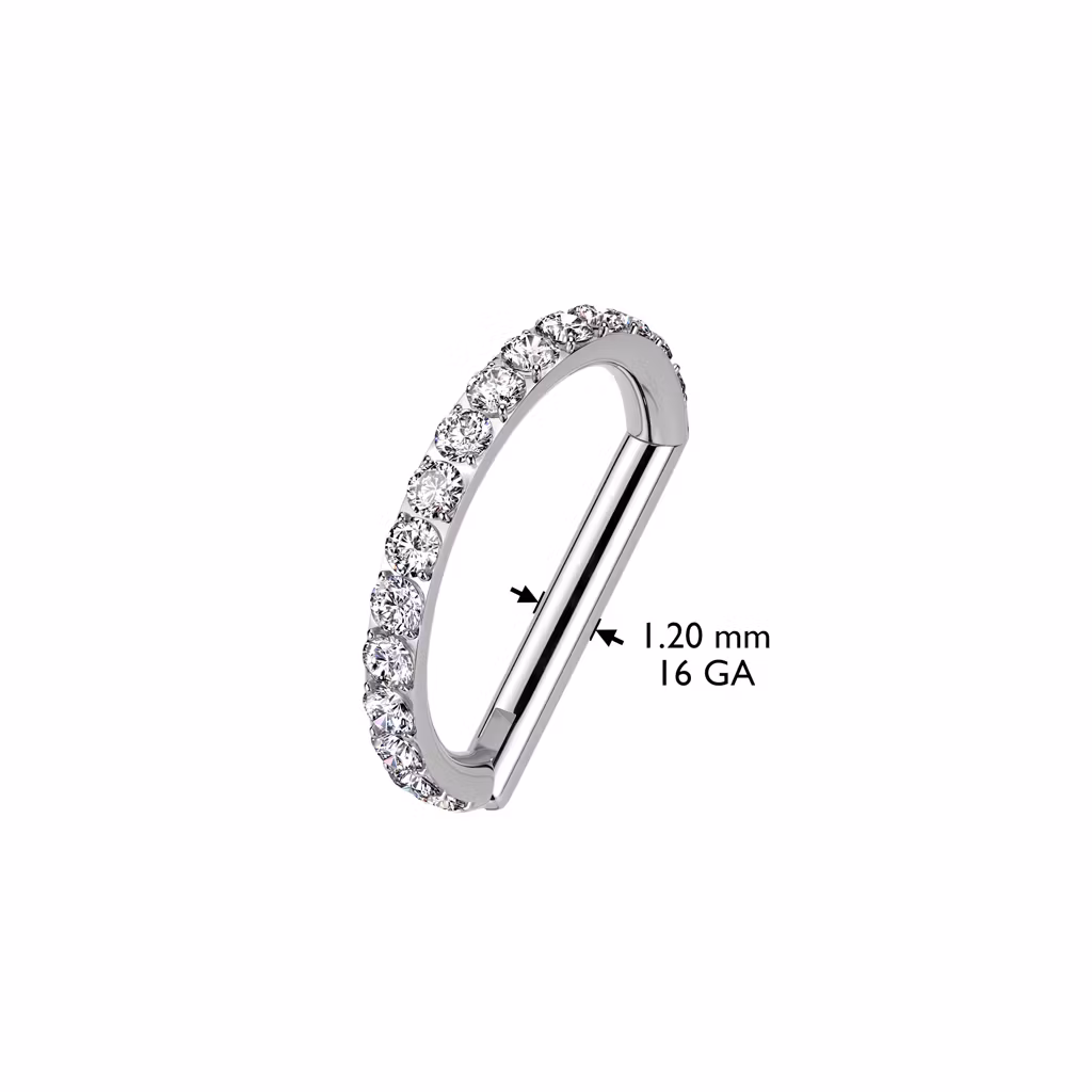 Clicker D-formad 1,2mm i titanium - ytterkant med kubisk zirconia