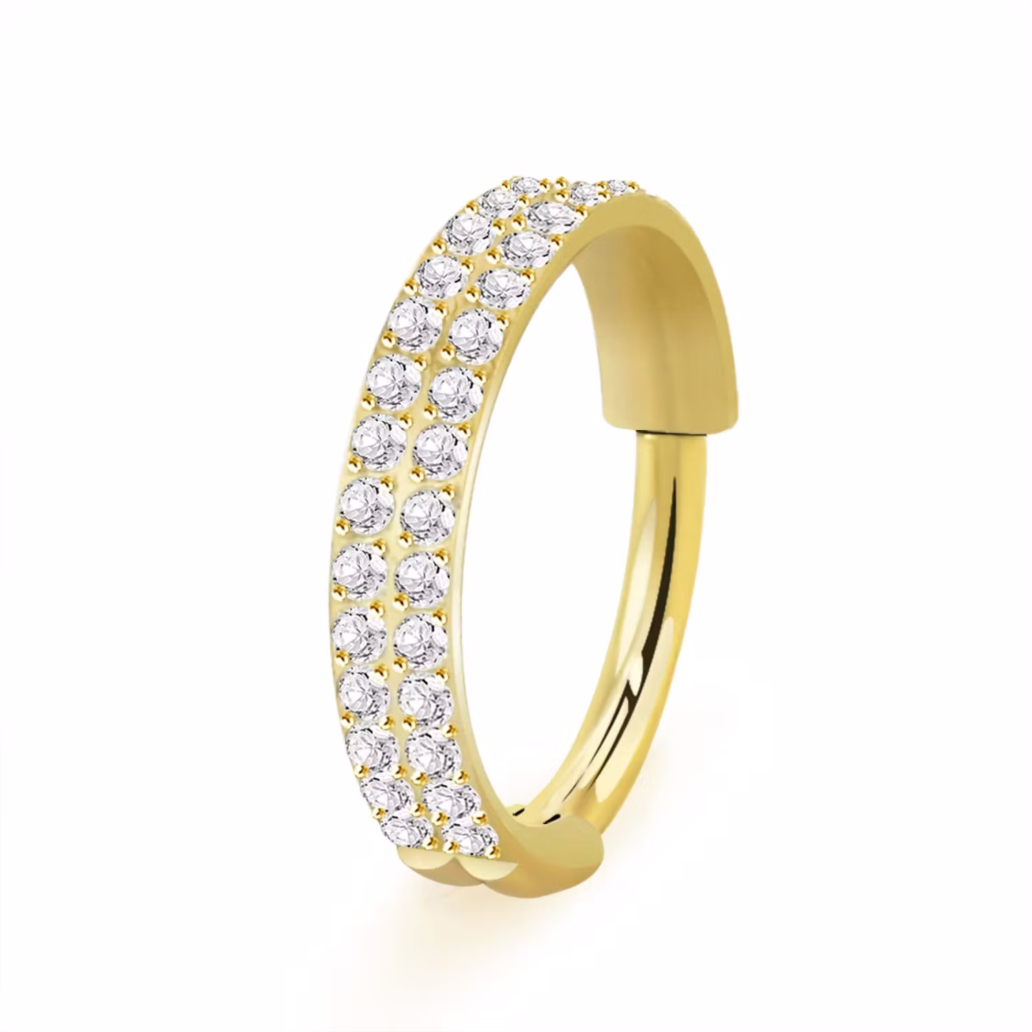 Clicker ring 1,2mm i PVD-pläterad titanium - dubbla rader kubisk zirconia på ytterkanten