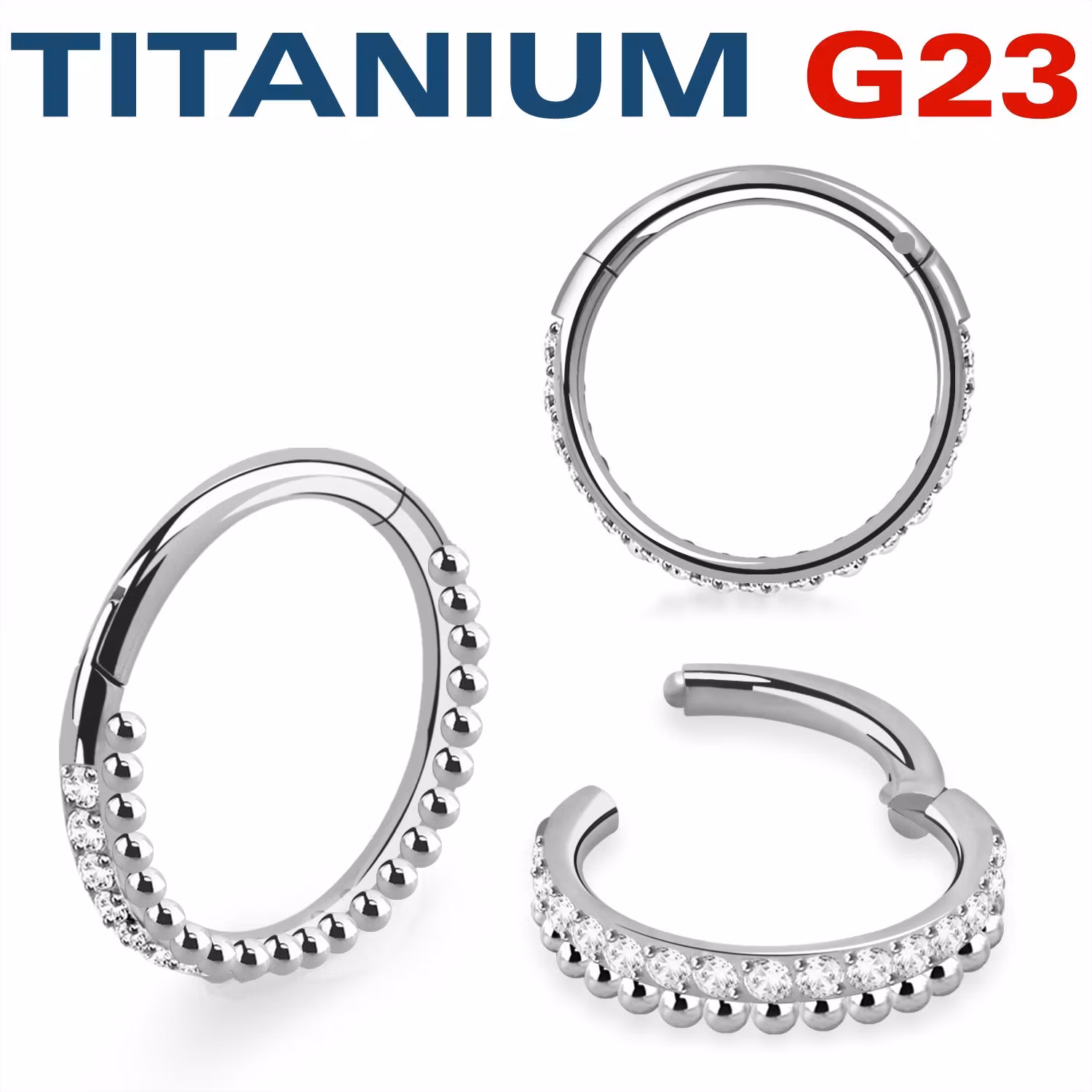 Clicker ring, öppningsbar med gångjärn. Tillverkad helt i ASTM-F136 Grade23 Titan. Högglanspolerad.