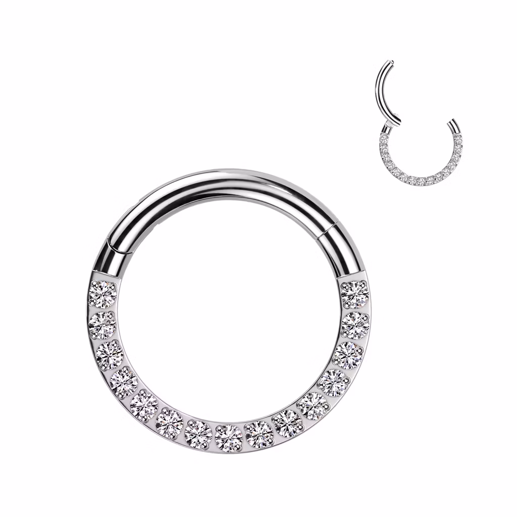 Clicker ring (öppningsbar med gångjärn) Helt tillverkad i implantatsäker ASTM F-136 Grade 23 Titanium.