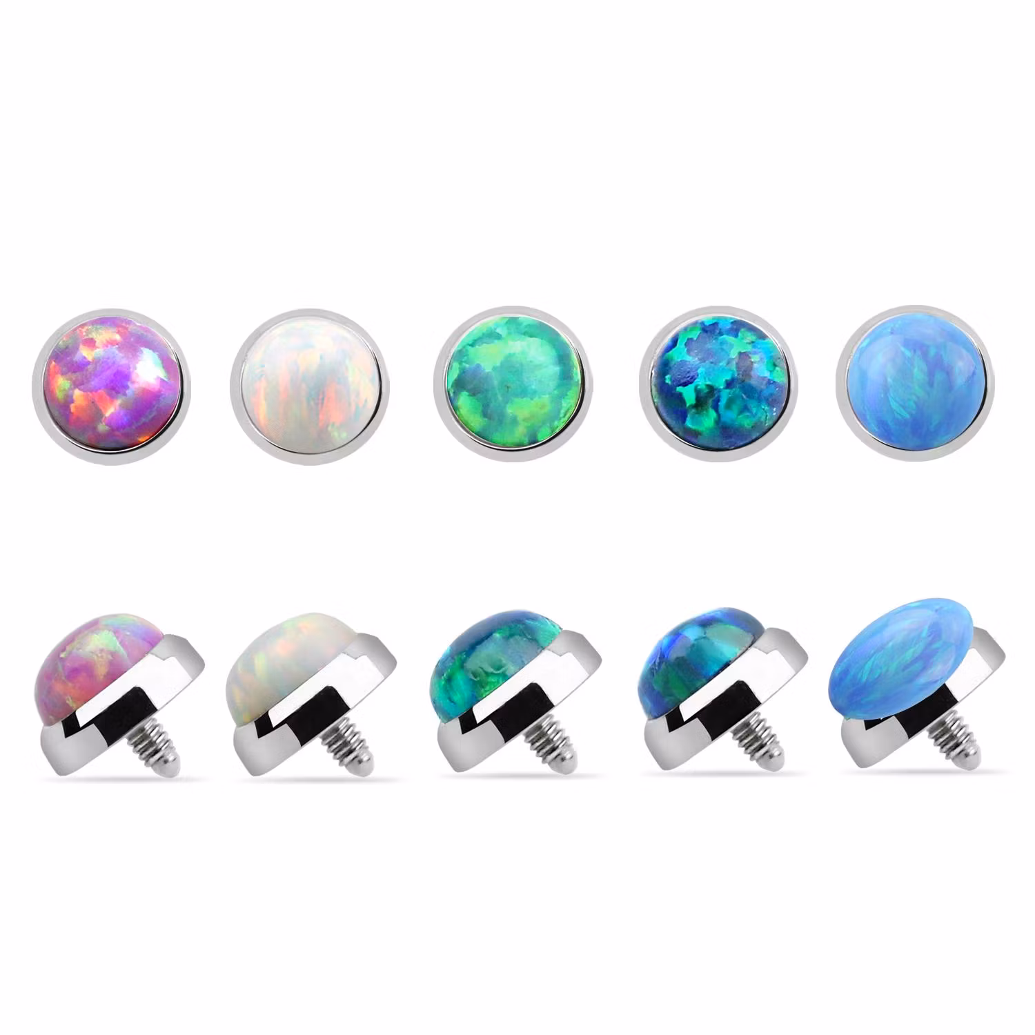 Platt topp med 5mm syntetisk opalit för dermal piercing.