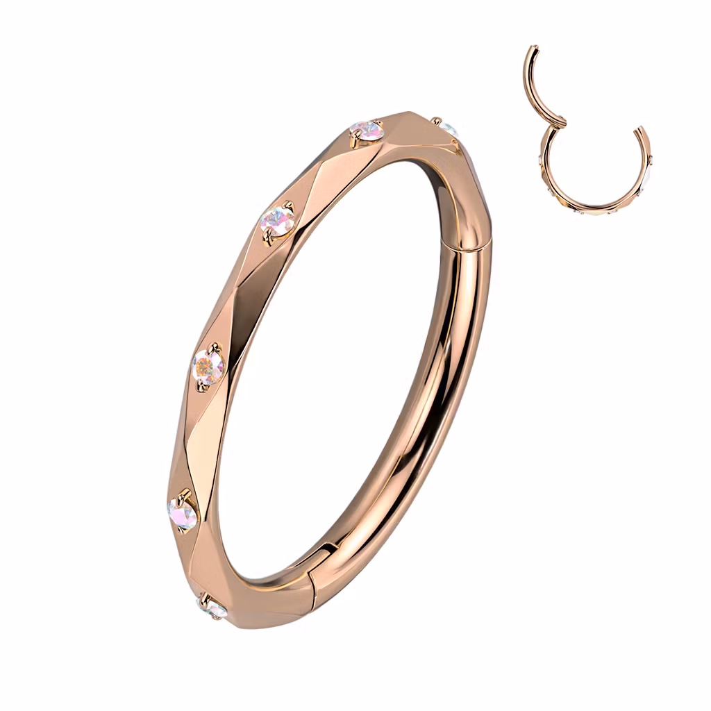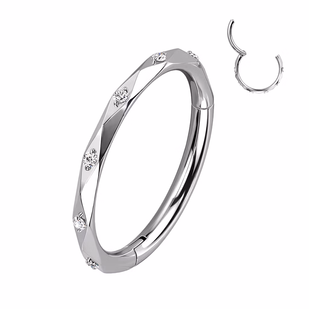Clicker ring (öppningsbar med gångjärn) helt tillverkad i implantatsäker ASTM-F136 Grade 23 Titanium.