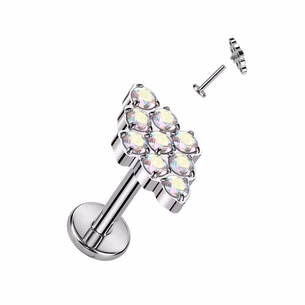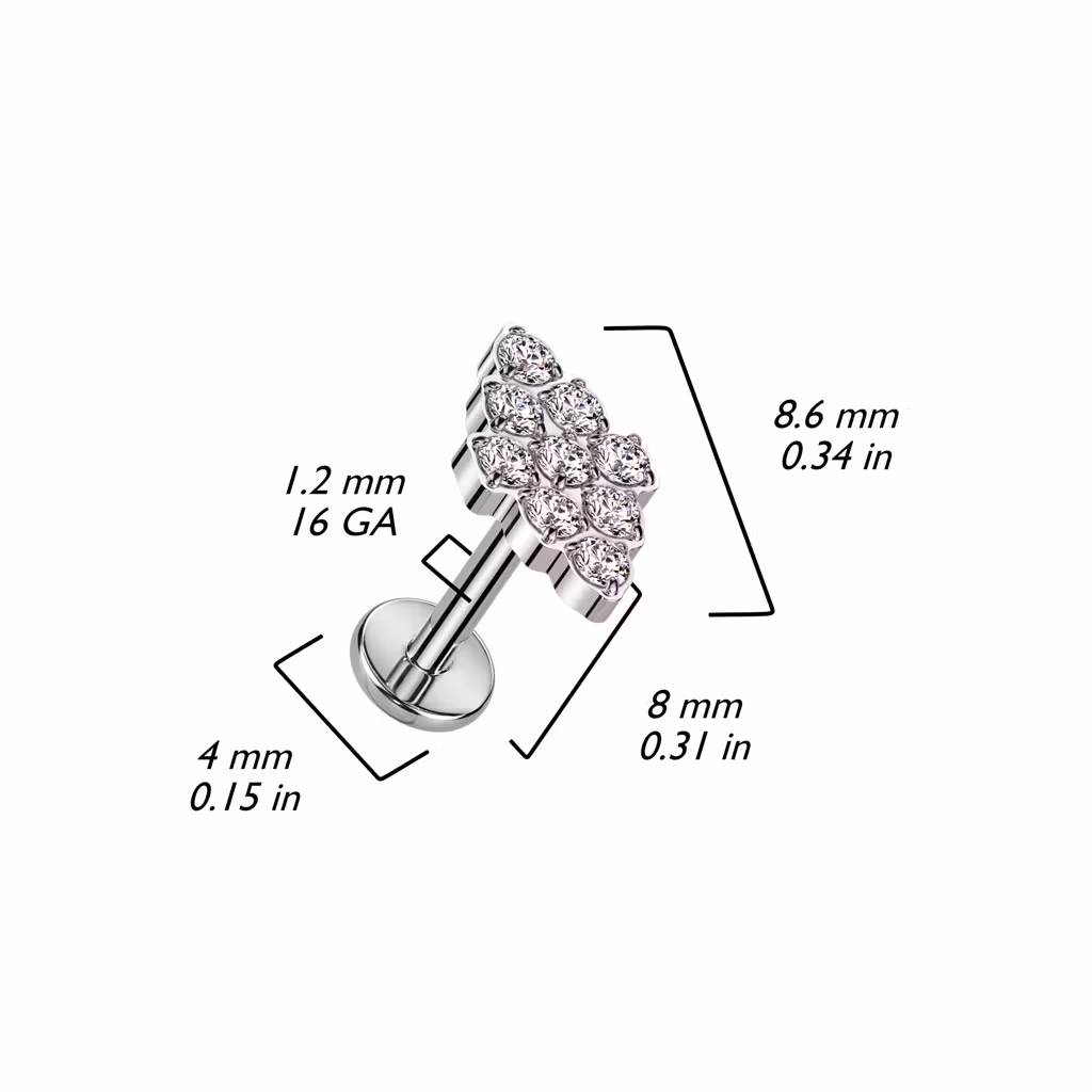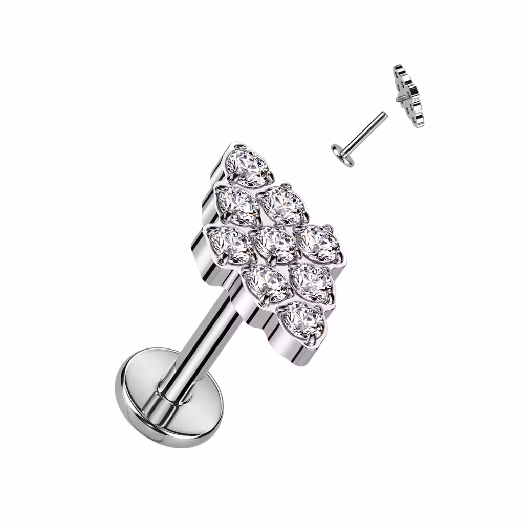 Labret / flat back piercing i titanium 1,2mm - Diamantformad topp med kubisk zirconia