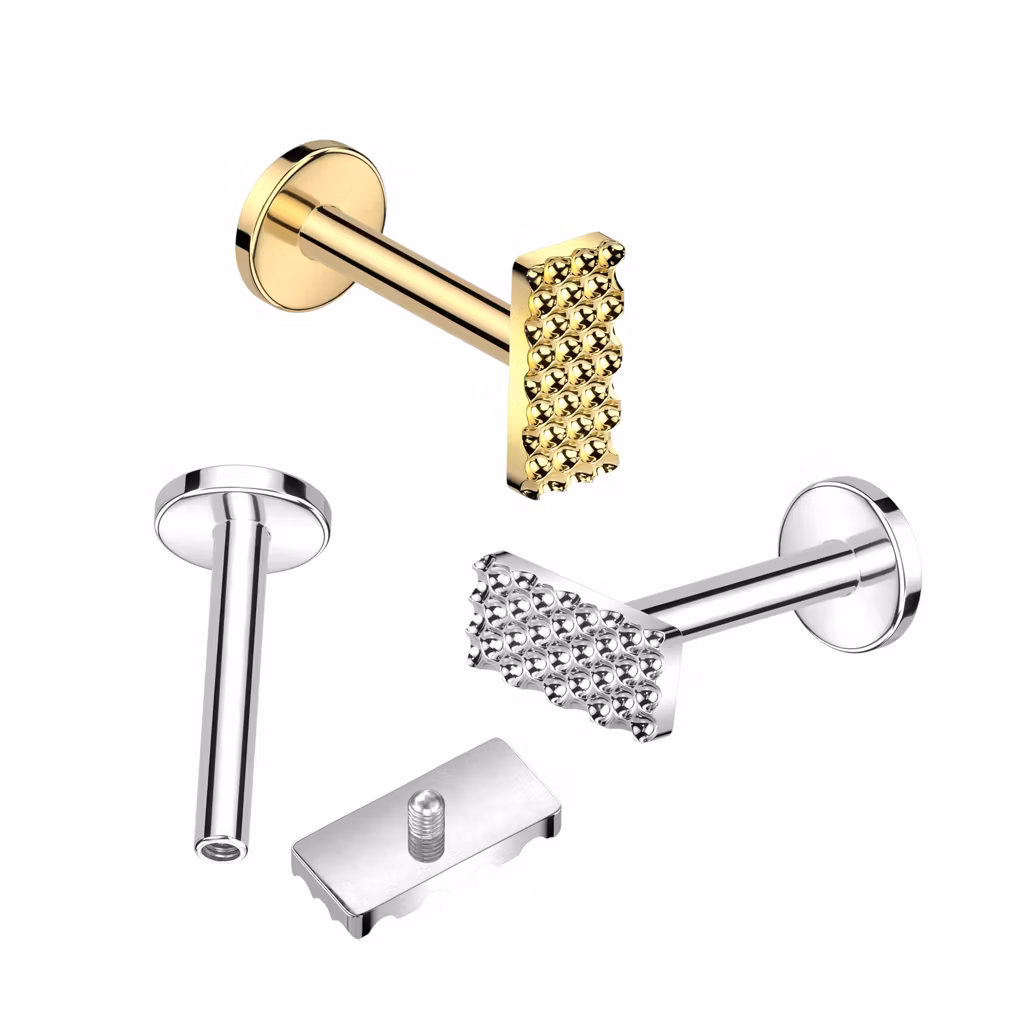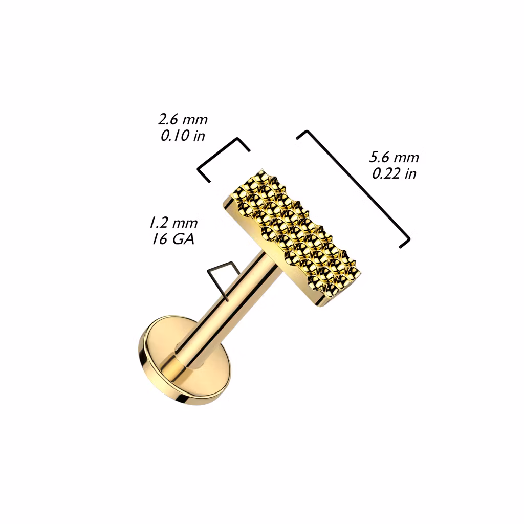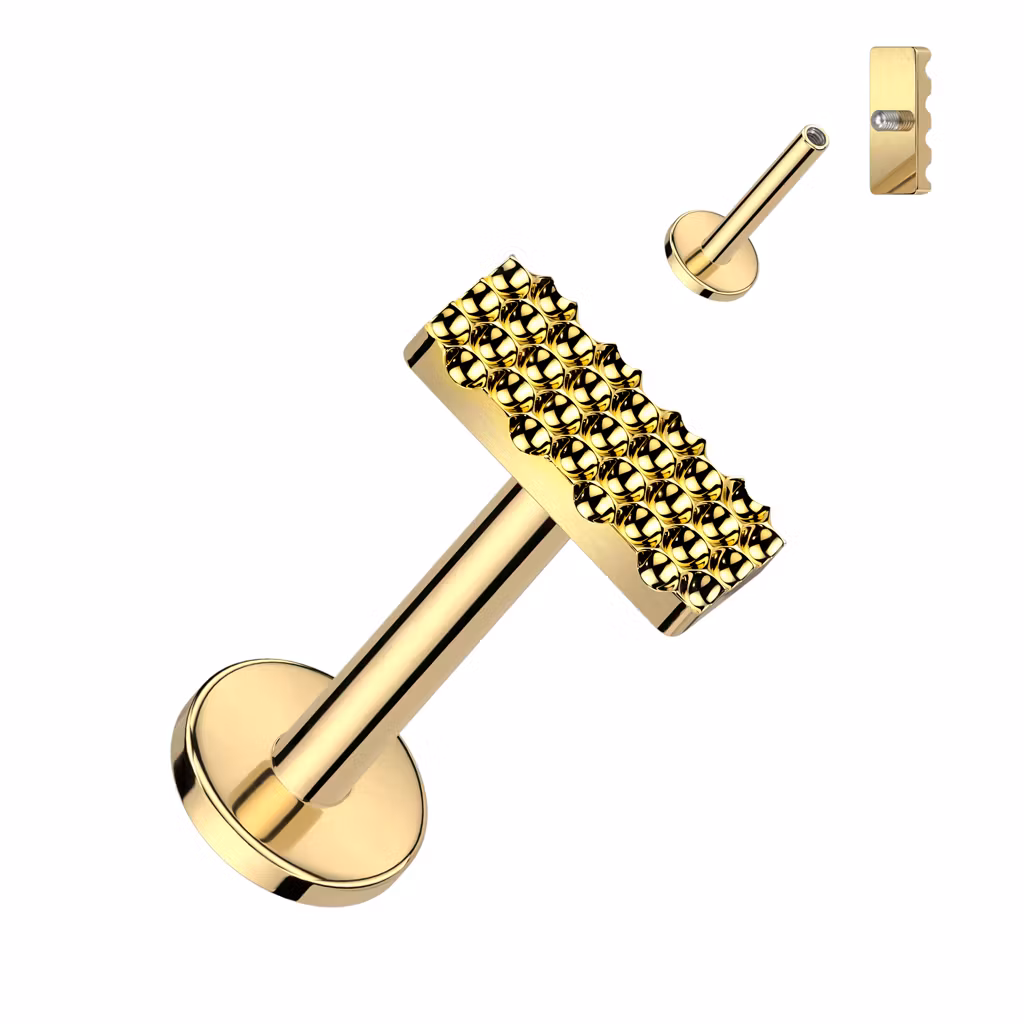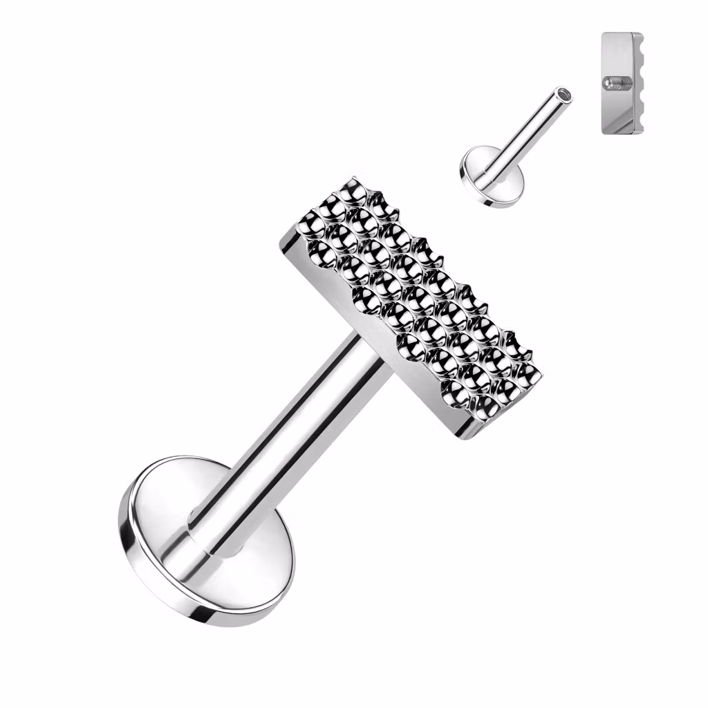 Labret / Flat back piercing i titanium 1,2mm - Rektangulär mönstrad topp