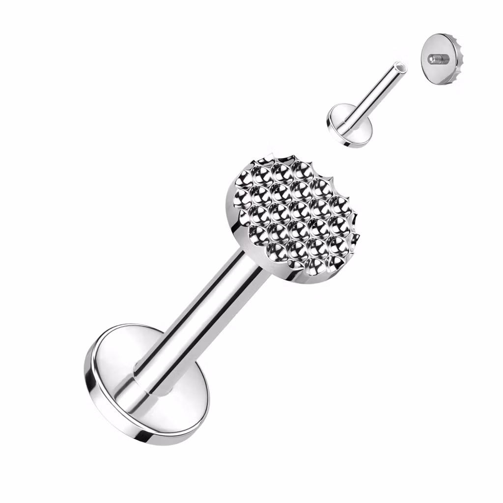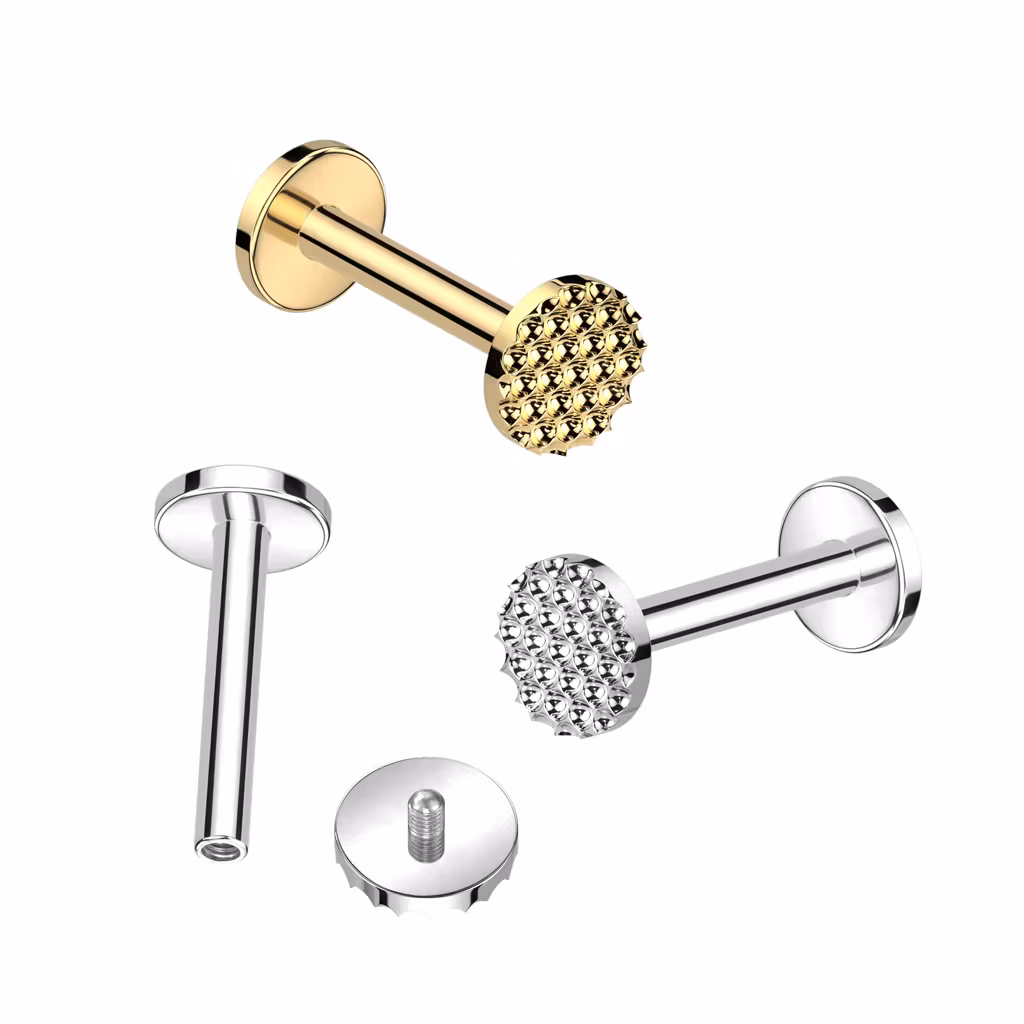Labret / flat back piercing titanium 1,2mm - Rund mönstrad topp