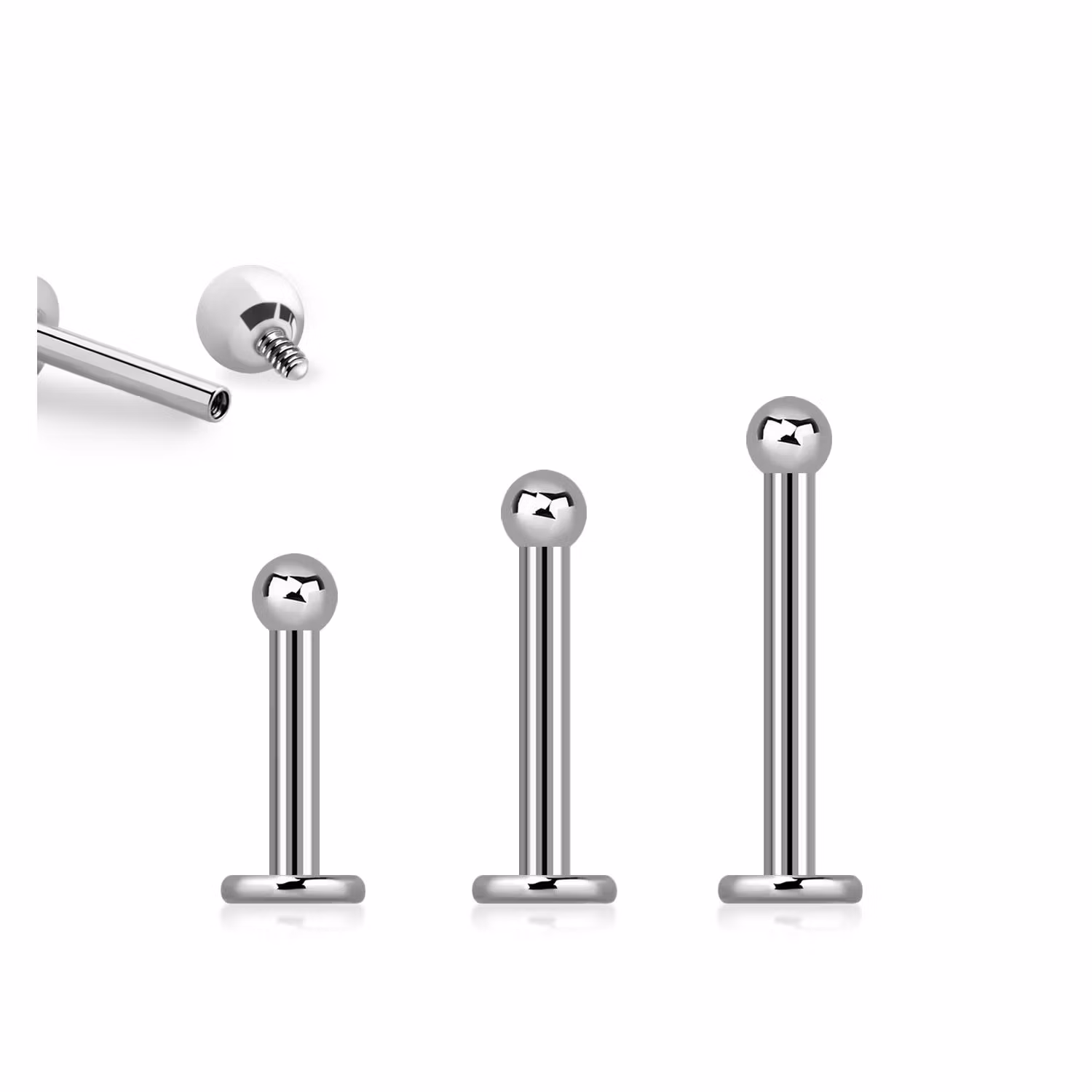 Titanium labret / flat back piercing 1,2mm med invändigt gängad 2mm kula