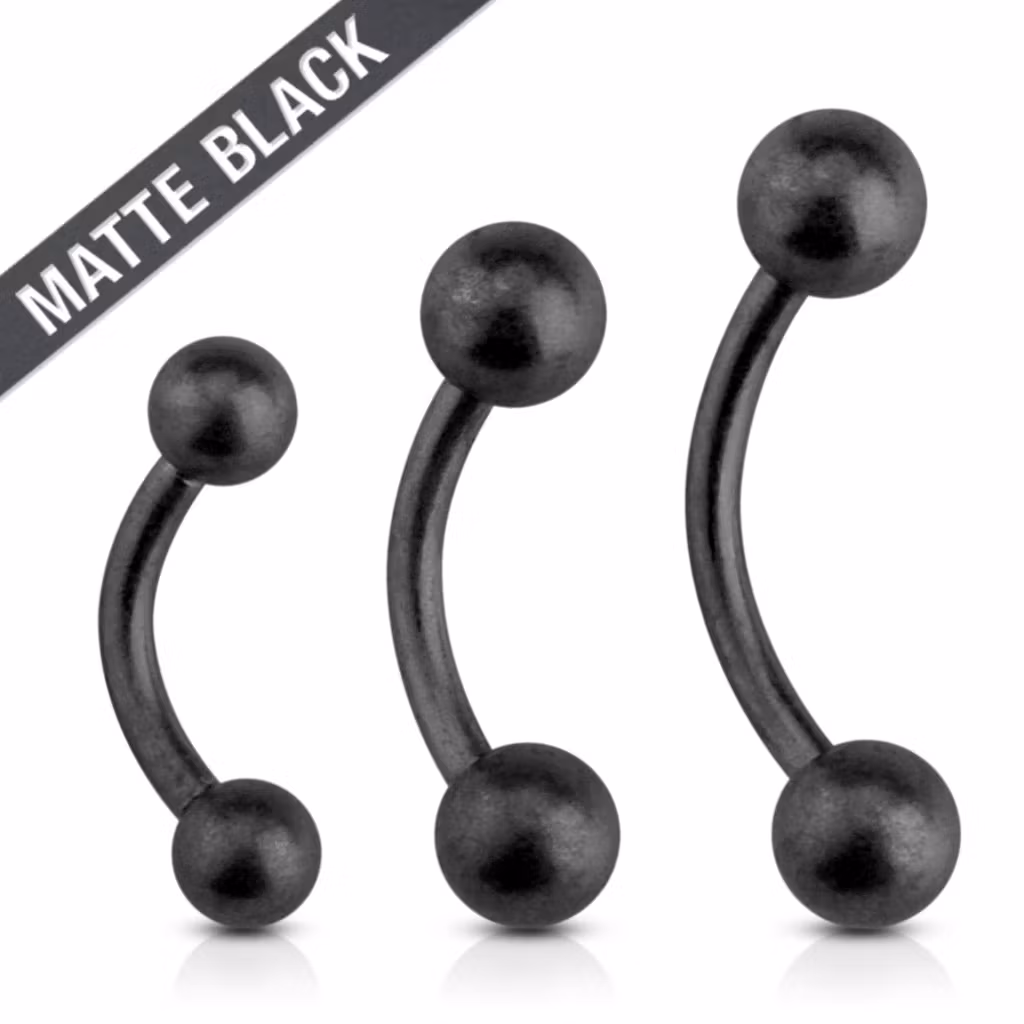 Mattsvart kirurgiskt stål - banana för piercing i ögonbryn 1,2mm