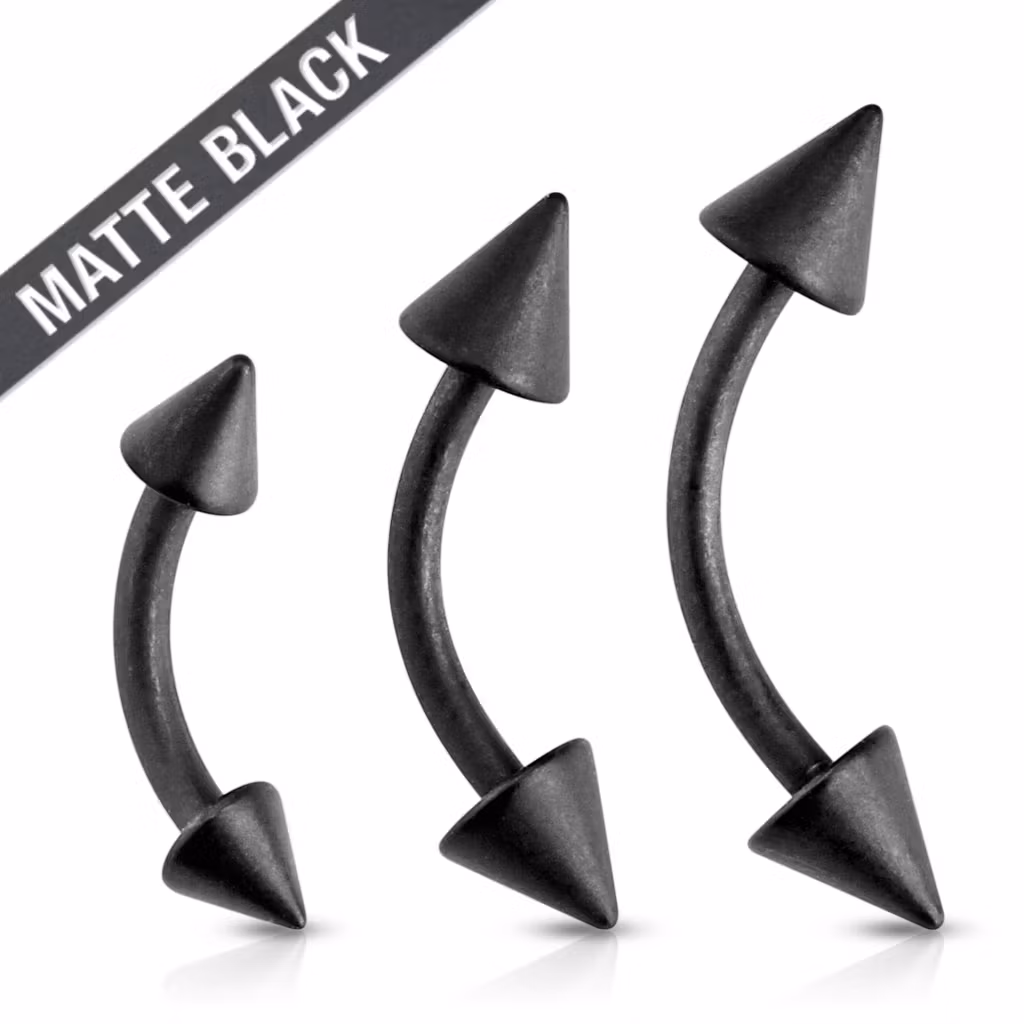 Mattsvart kirurgiskt stål - banana för piercing i ögonbryn 1,2mm med koner