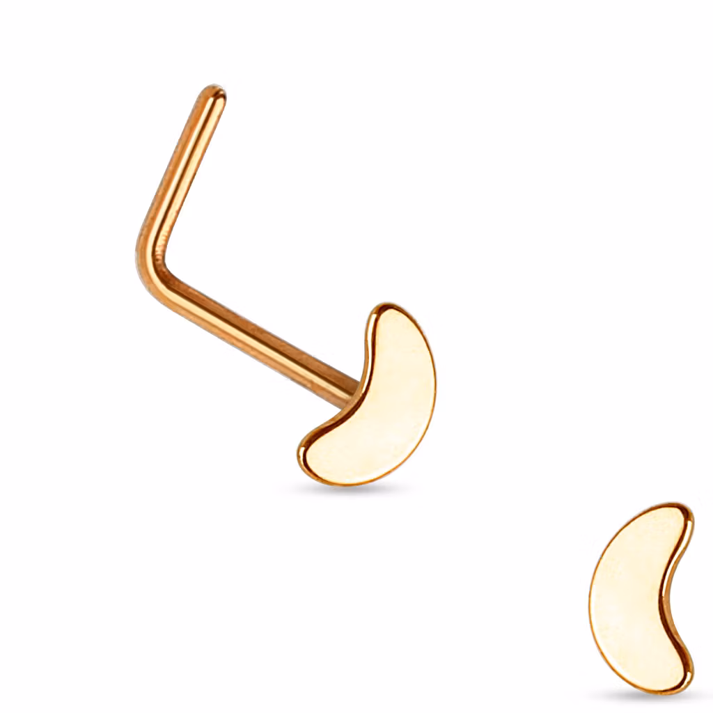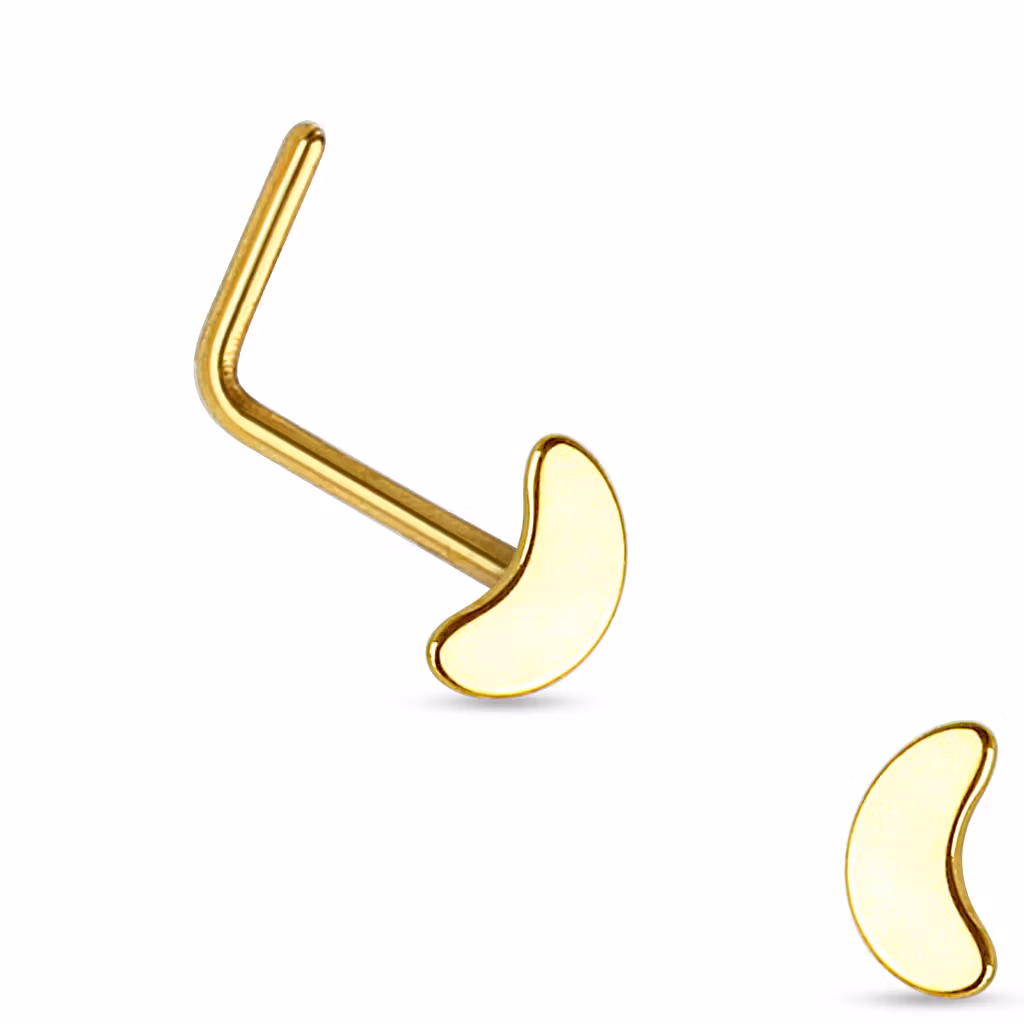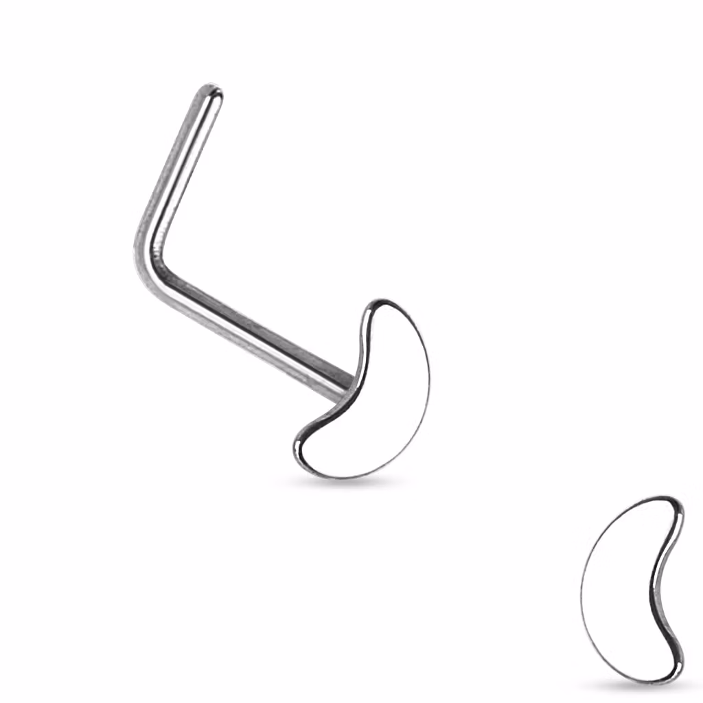 L-böjd näspiercing tillverkad helt i 316L kirurgiskt stål. Högglanspolerad eller PVD-pläterade.