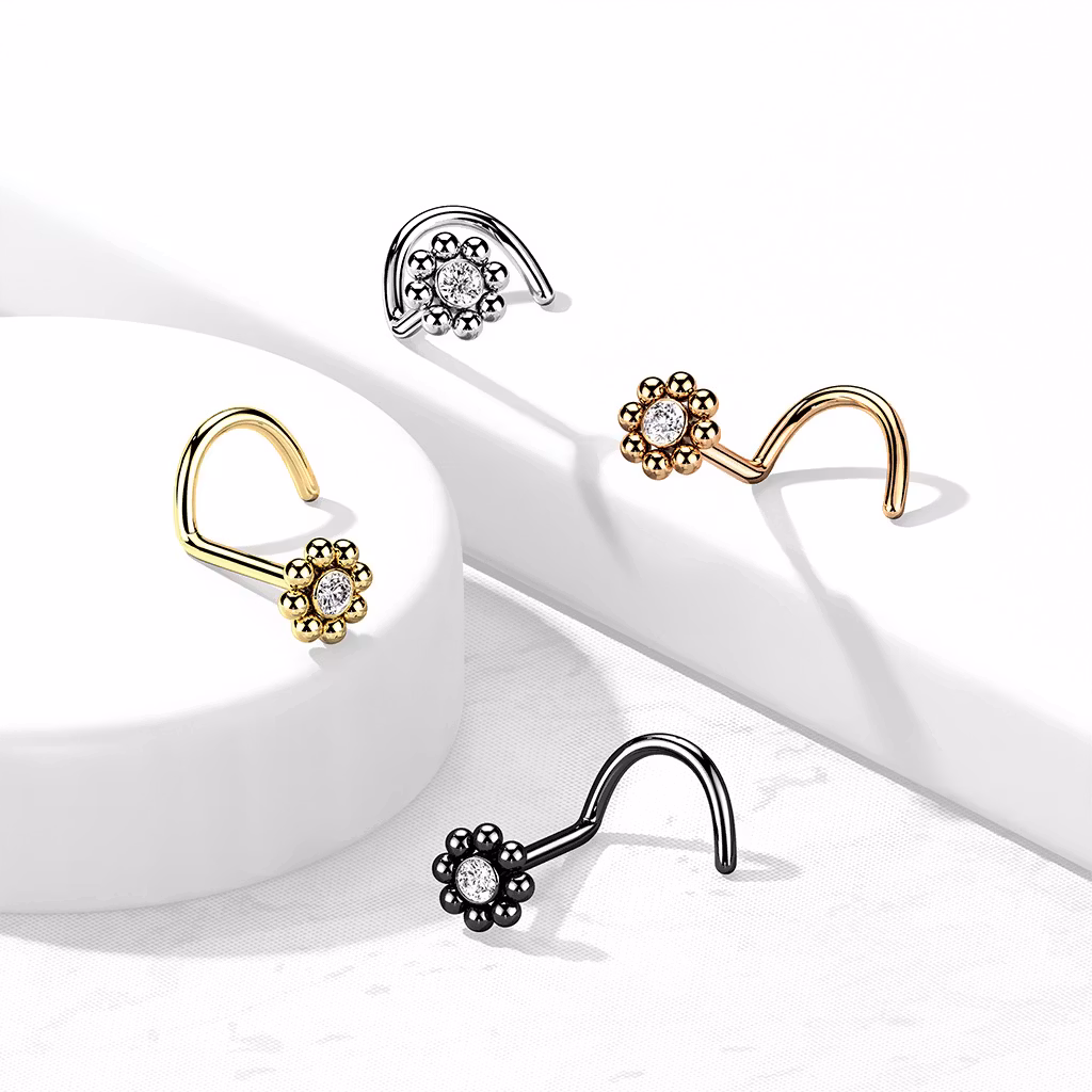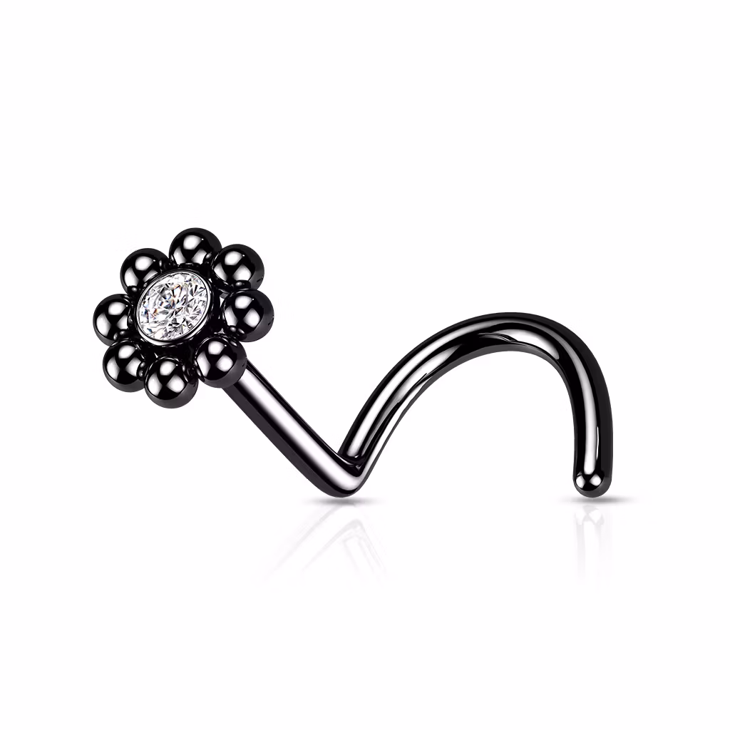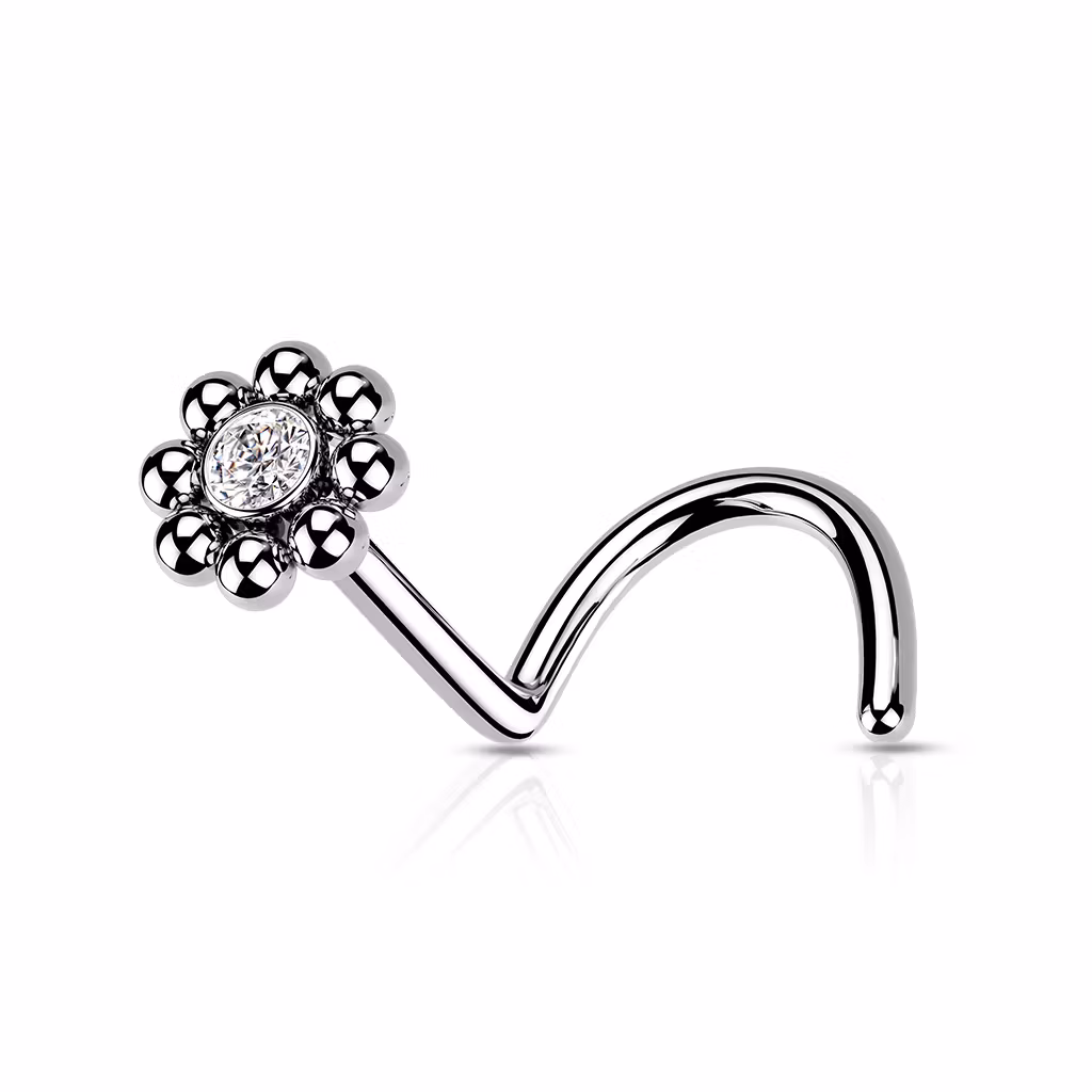 Nässmycke i kirurgiskt stål 0,8mm - Blomma med kubisk zirconia