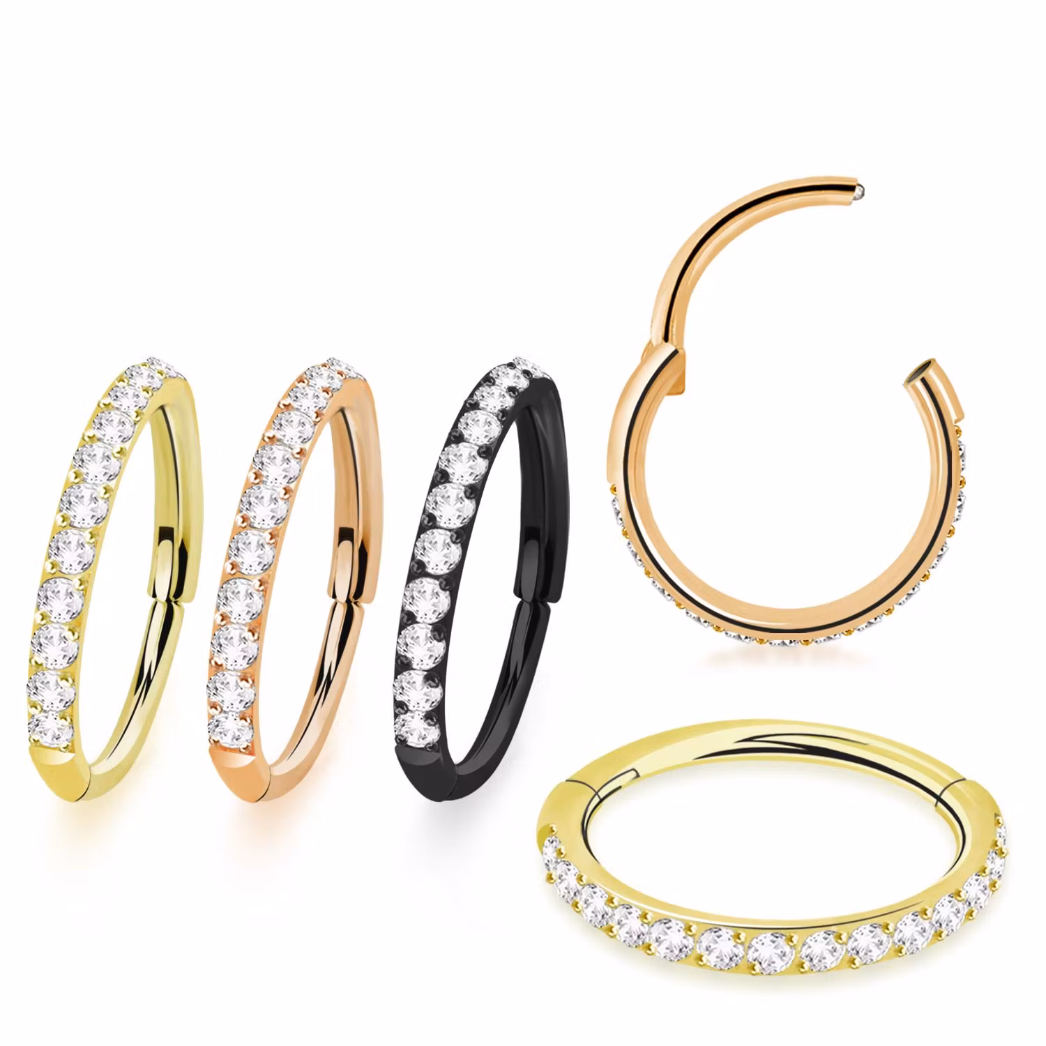 Clicker ring, öppningsbar med gångjärn. Helt tillverkad i implantatsäker ASTM-F136 Grade23 PVD-pläterad Titan.