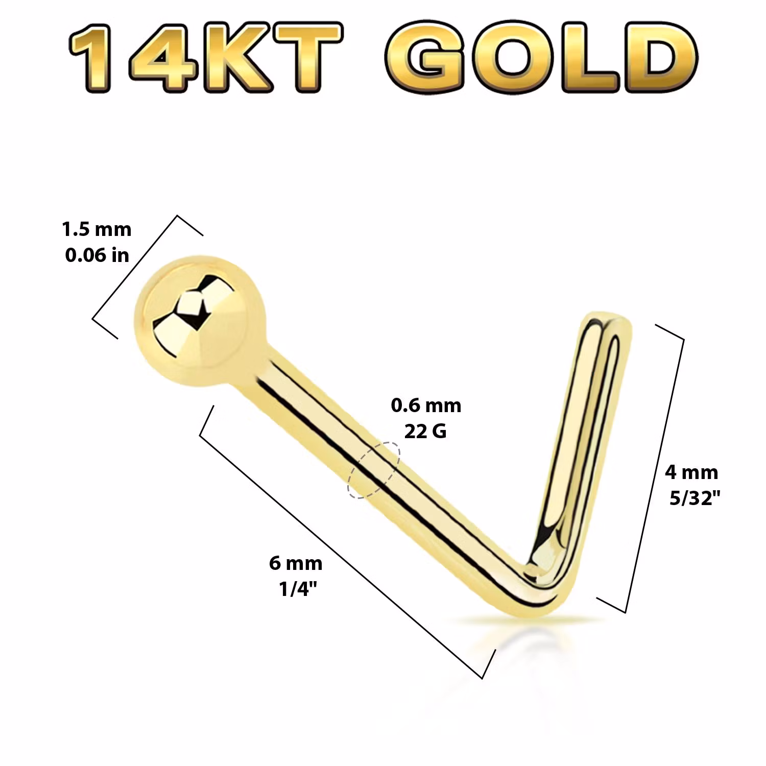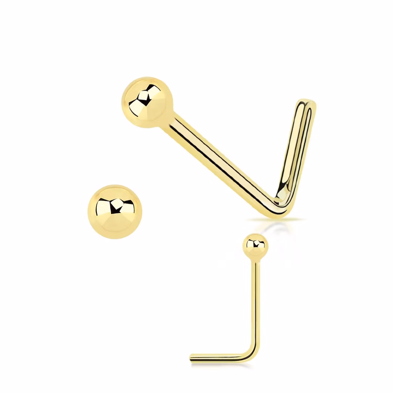 Nässmycke i äkta 14 karat guld. 22gauge - 0,6mm. Med 1,5mm bollformad topp.