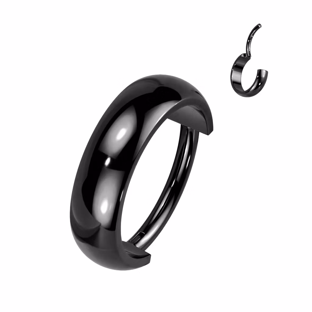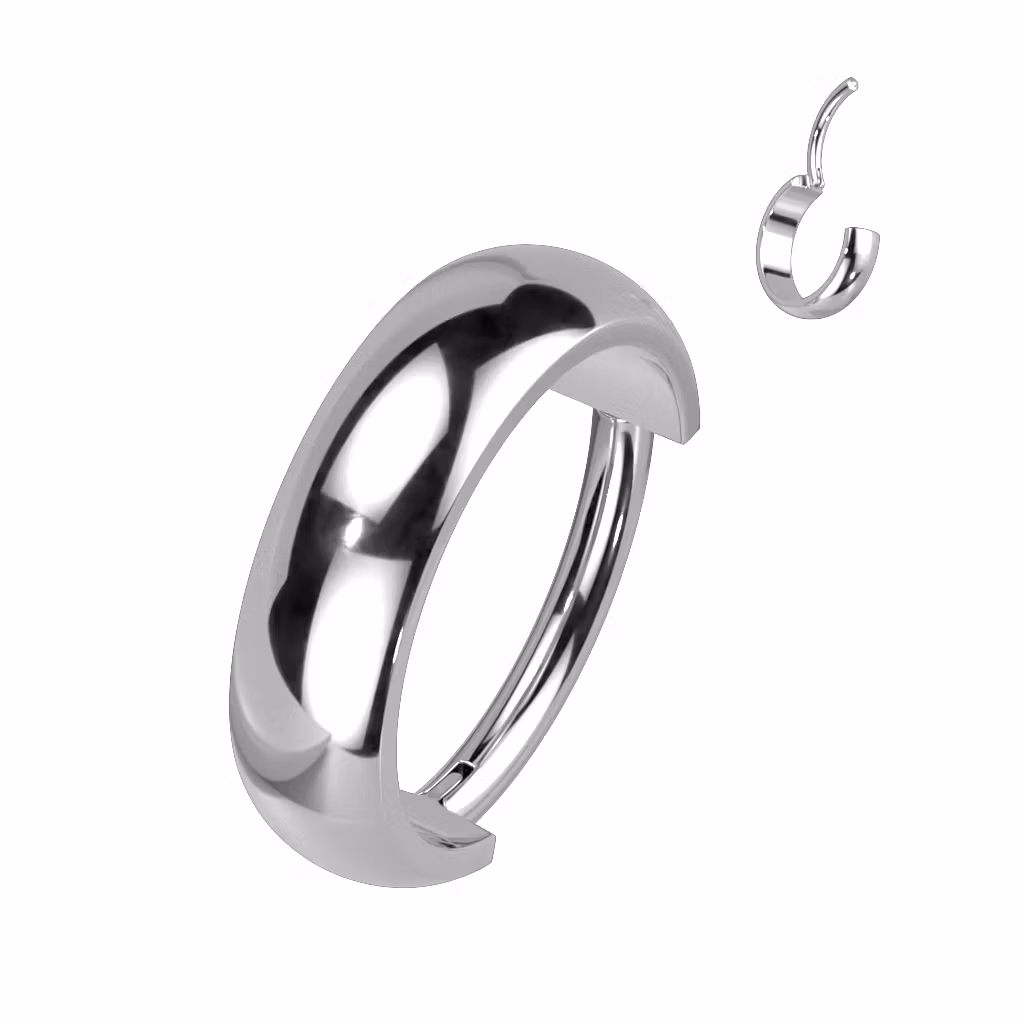 Clicker ring (öppningsbar med gångjärn) Tillverkad helt i implantatsäker ASTM-F136 Grade 23 Titanium.