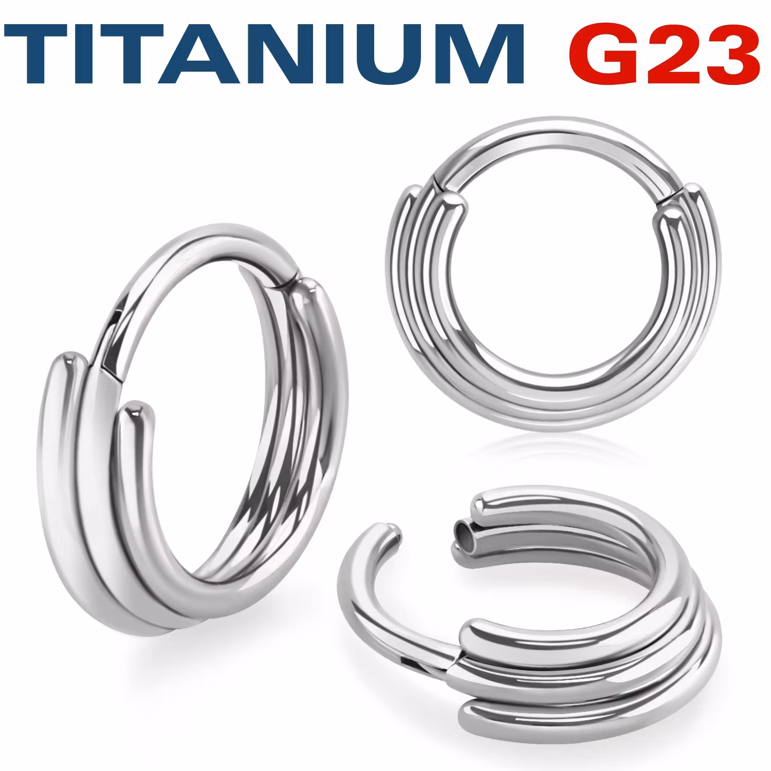 Clicker ring, öppningsbar med gångjärn. Tillverkad helt i ASTM-F136 Grade23 Titan. Högglanspolerad.