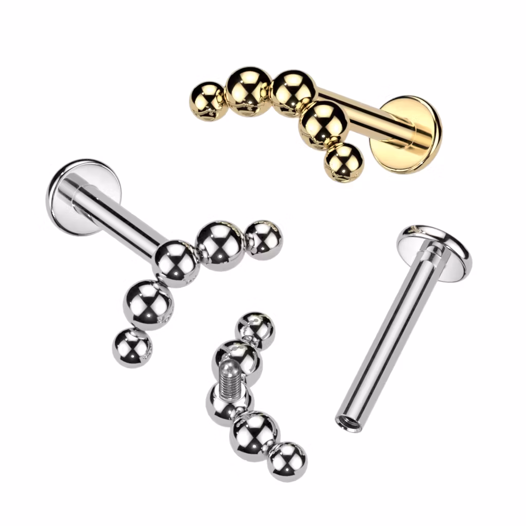 Labret / flat back i titanium 1,2mm - Lätt böjd topp med fem bollar i rad