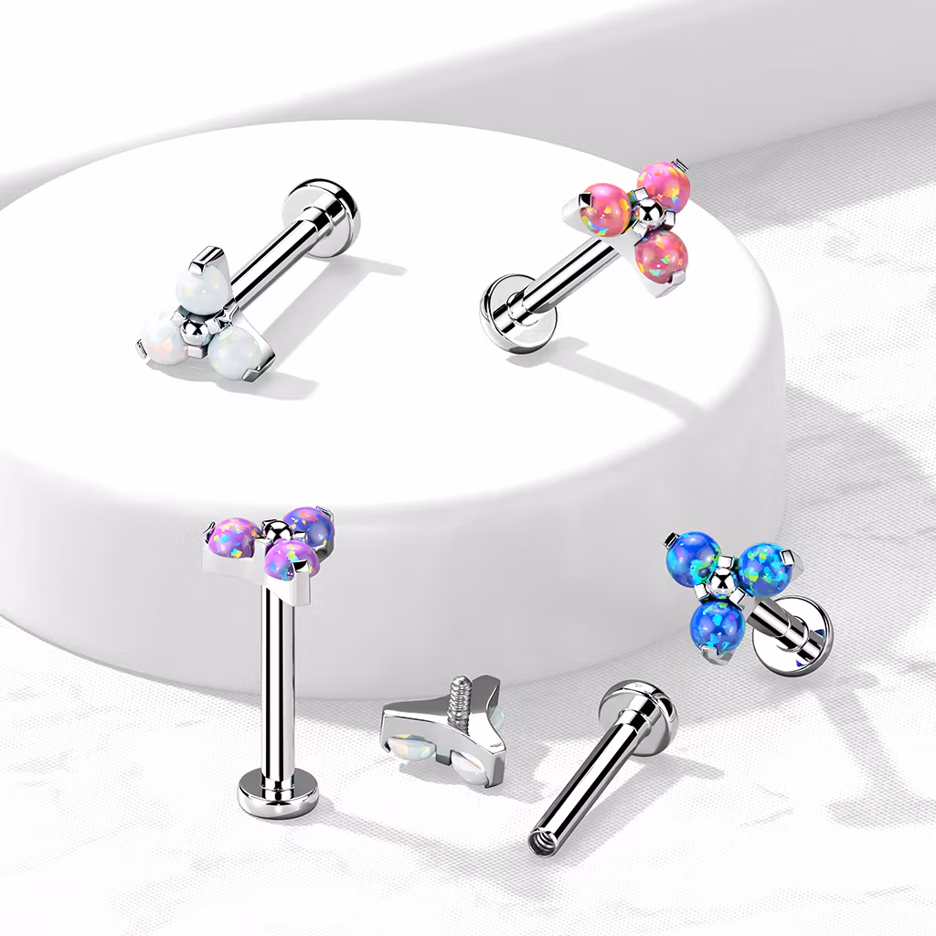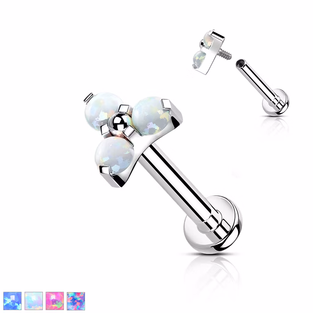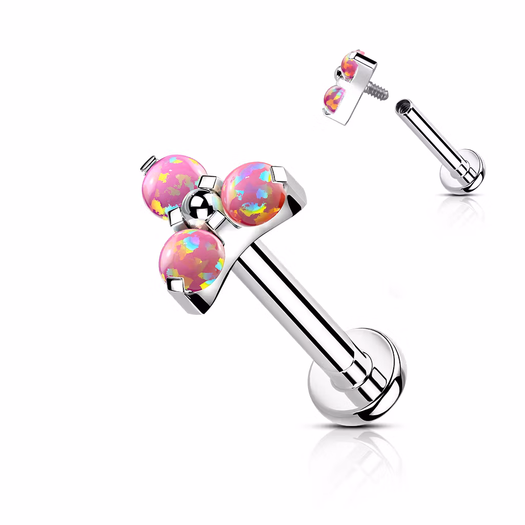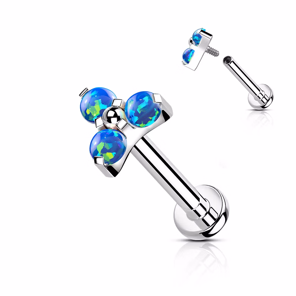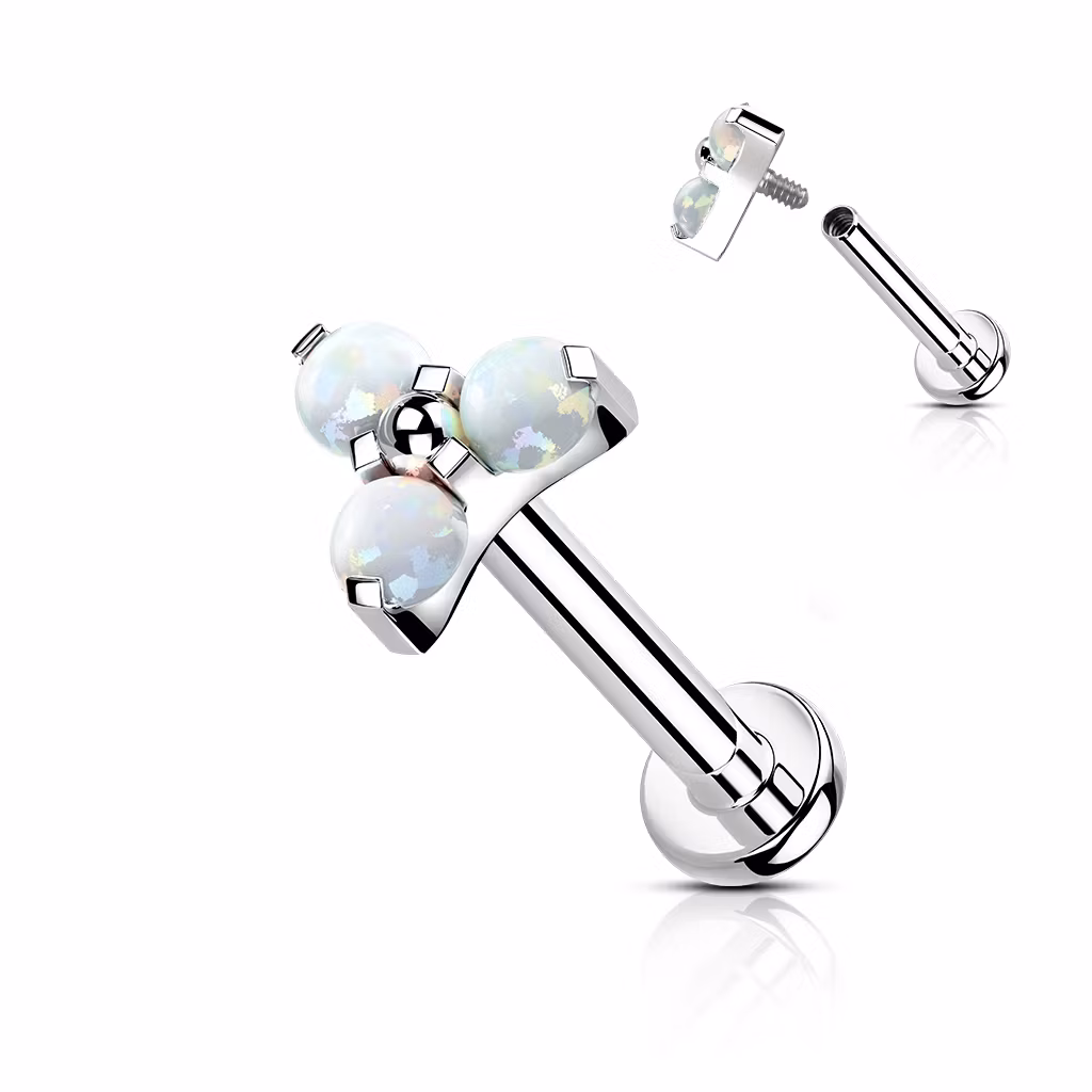 Labret / flat back piercing i titanium 1,2mm - Treenighet med opaler