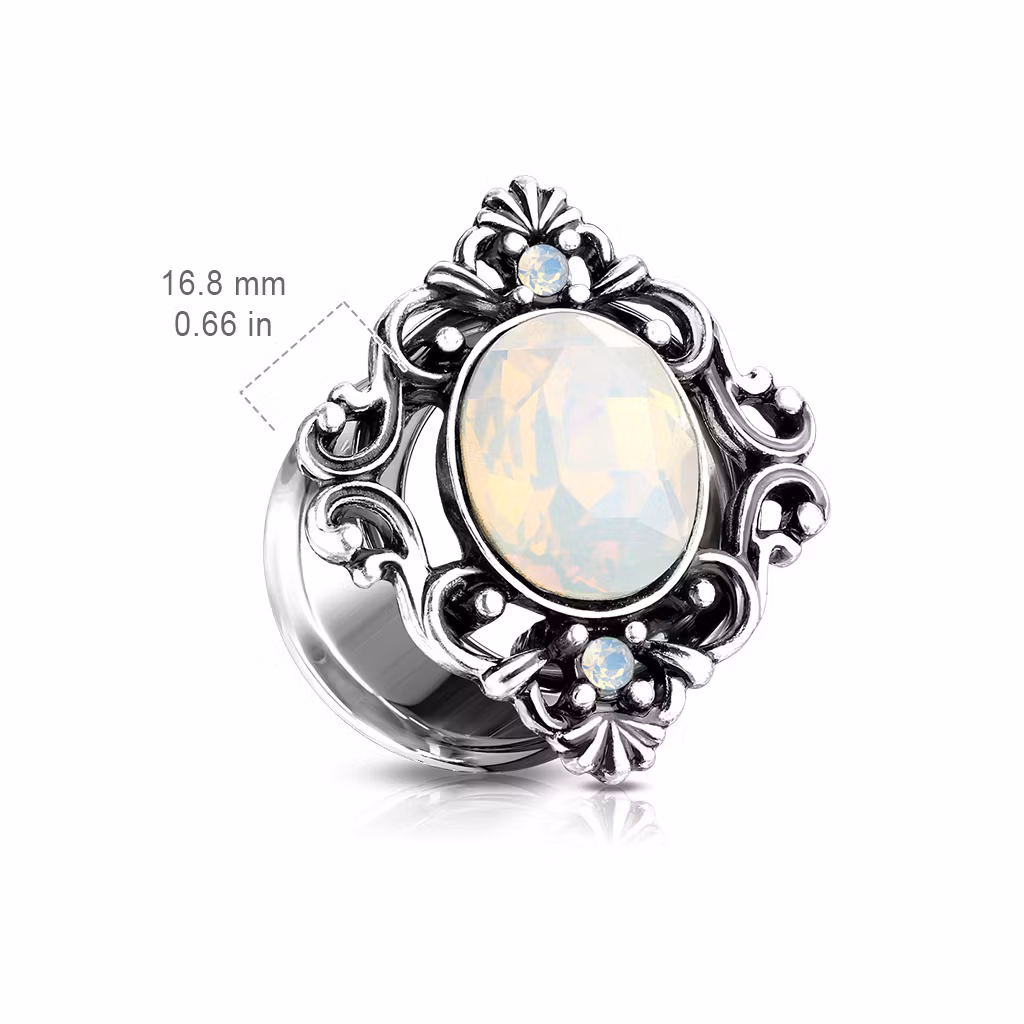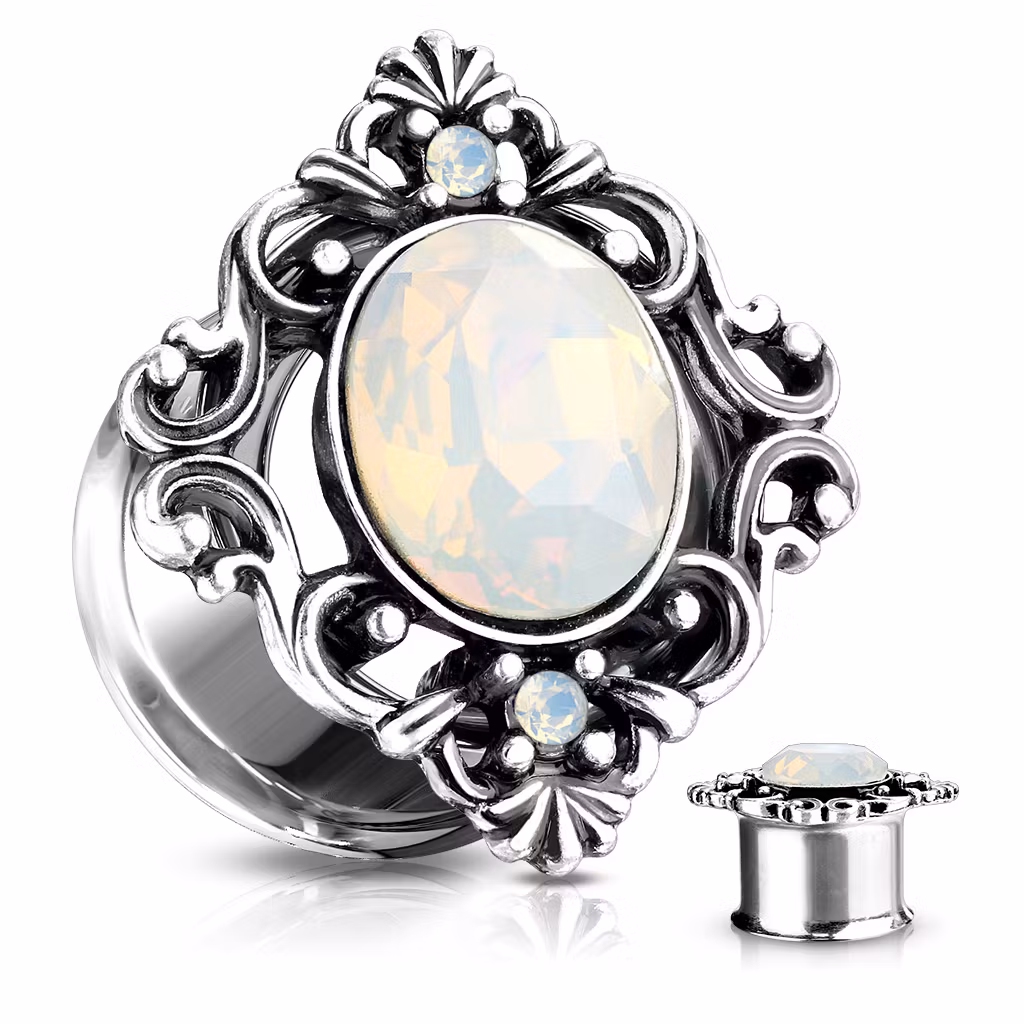 Plugg / töjning med filigran och oval syntetisk opal (6-16mm)