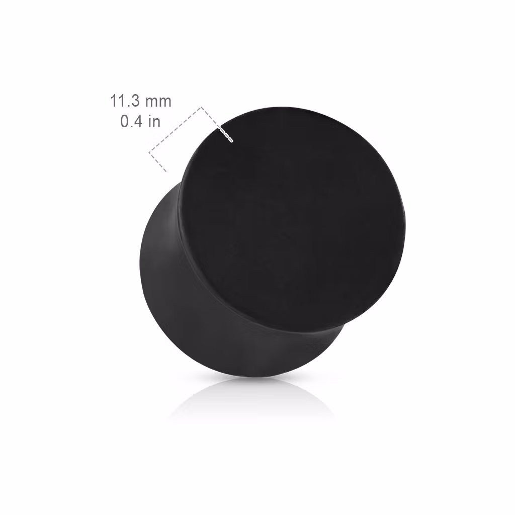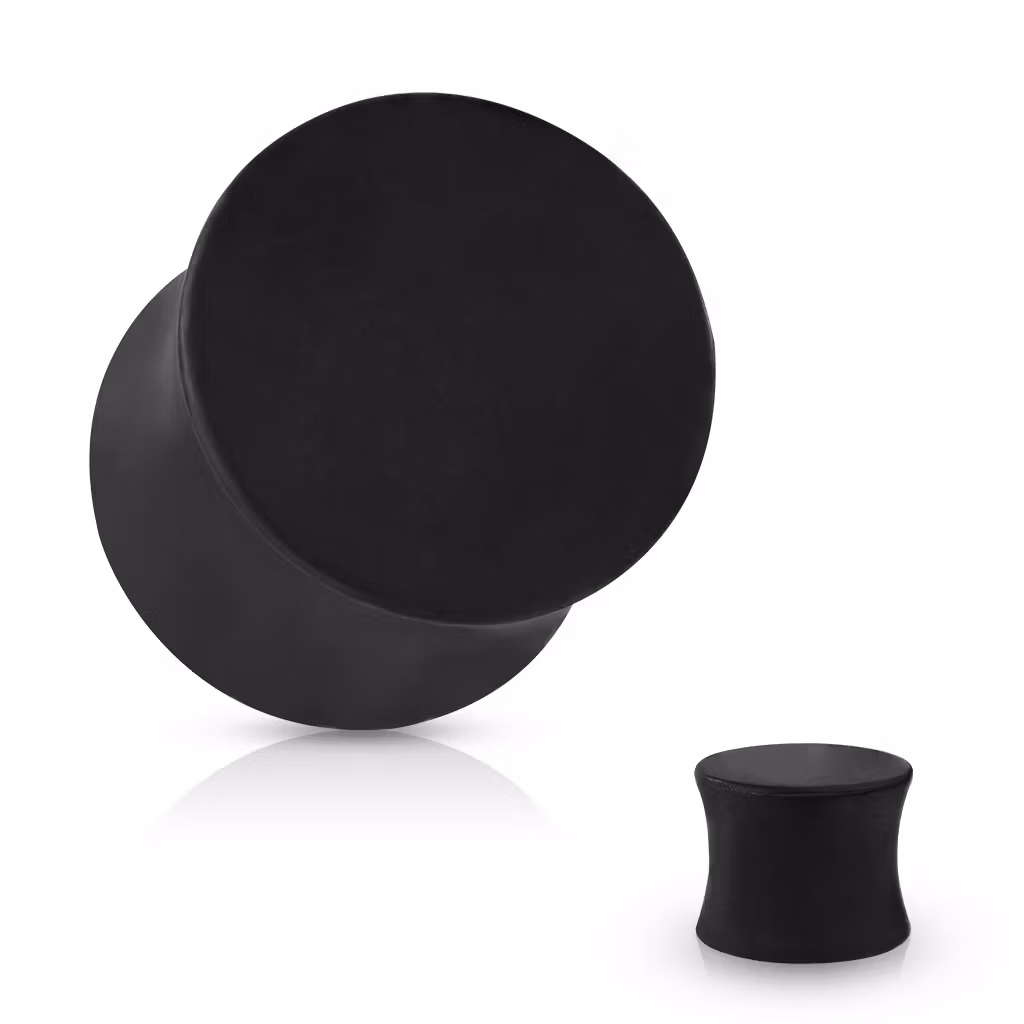 Mattsvart plugg i kirurgiskt stål. Något större kanter som håller den på plats.