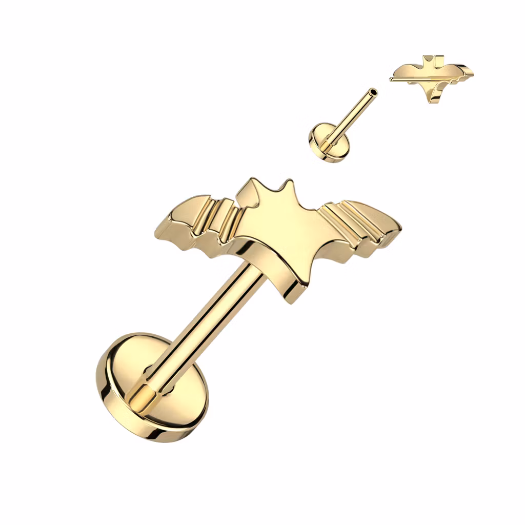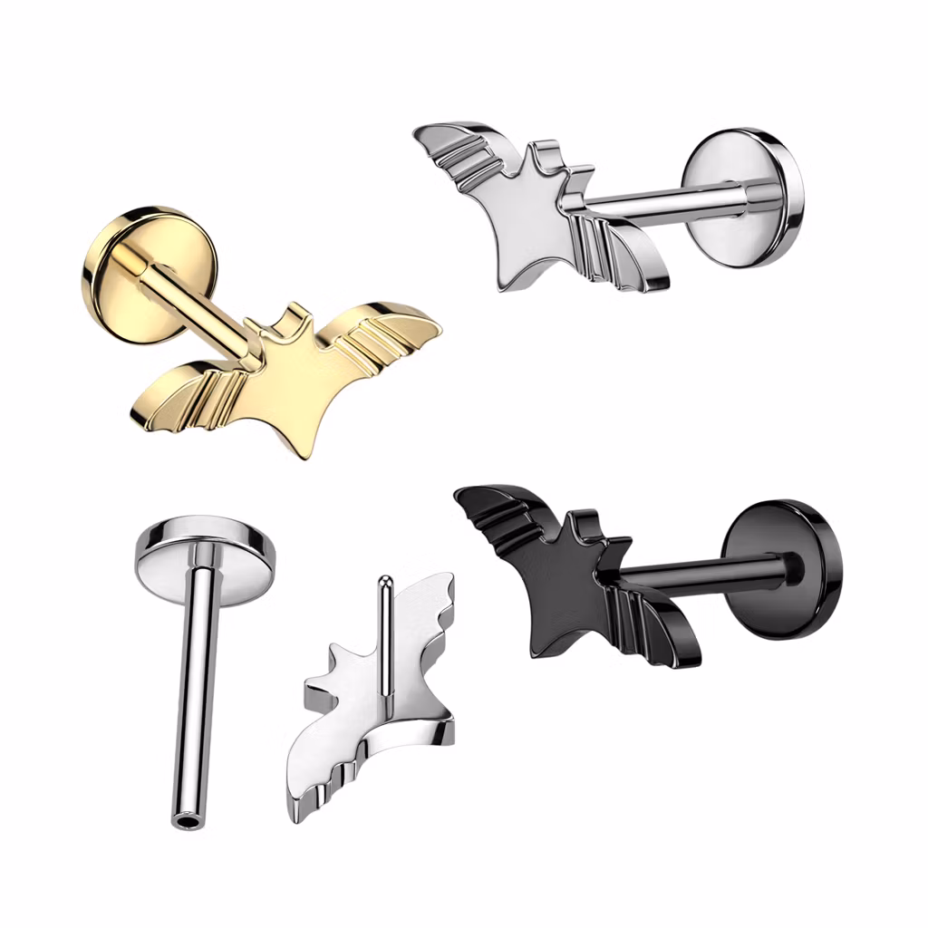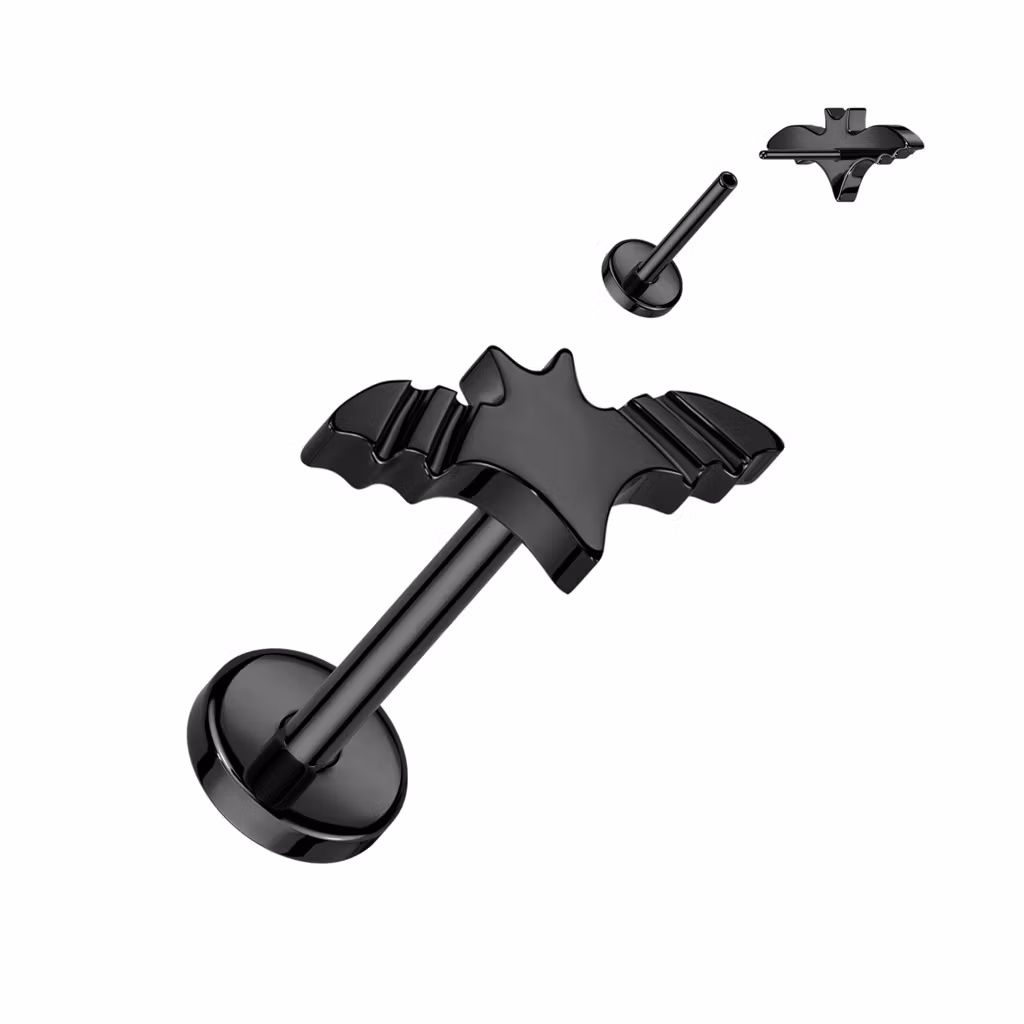 Labret / Flat back piercing i titanium 1,0mm Threadless - Topp med fladdermus