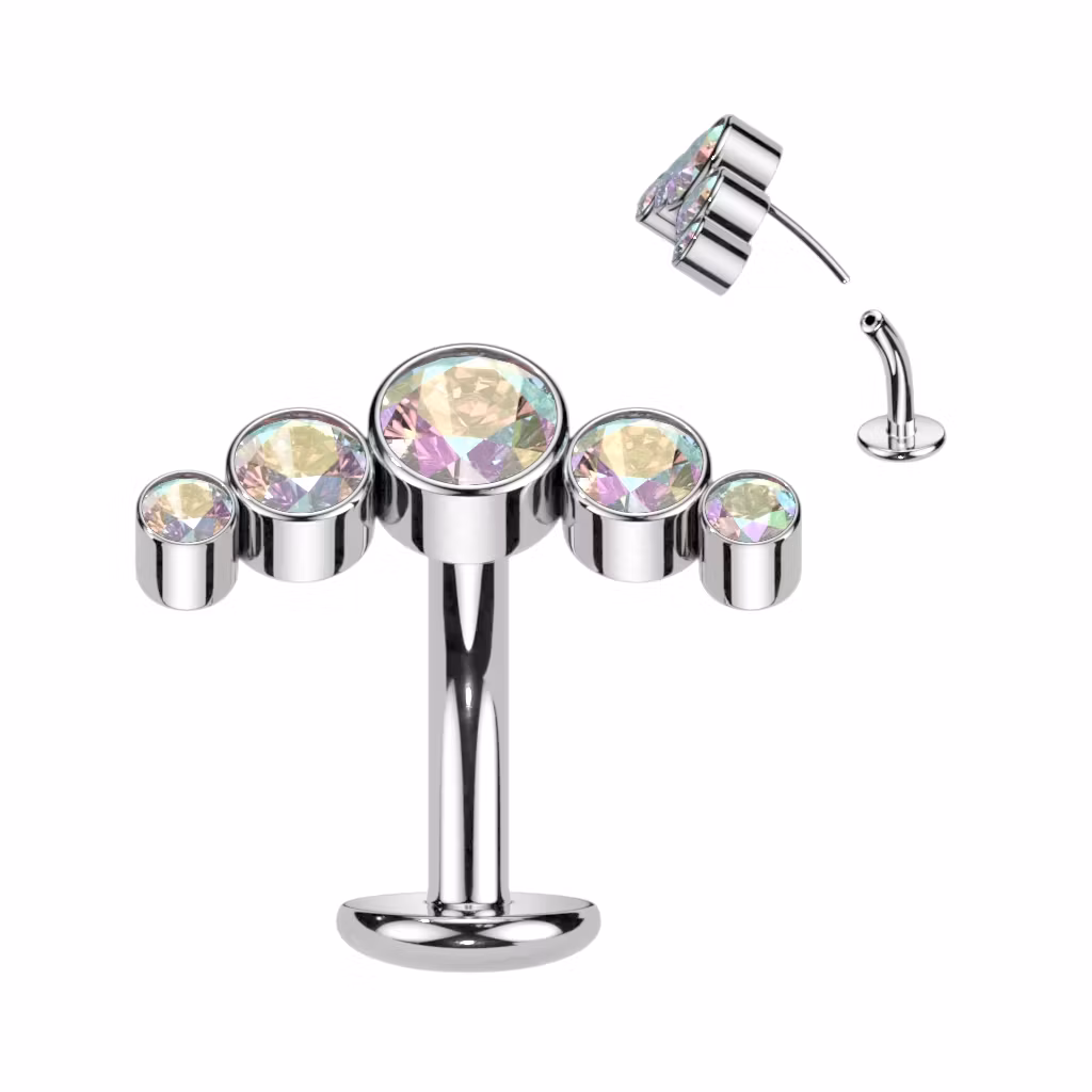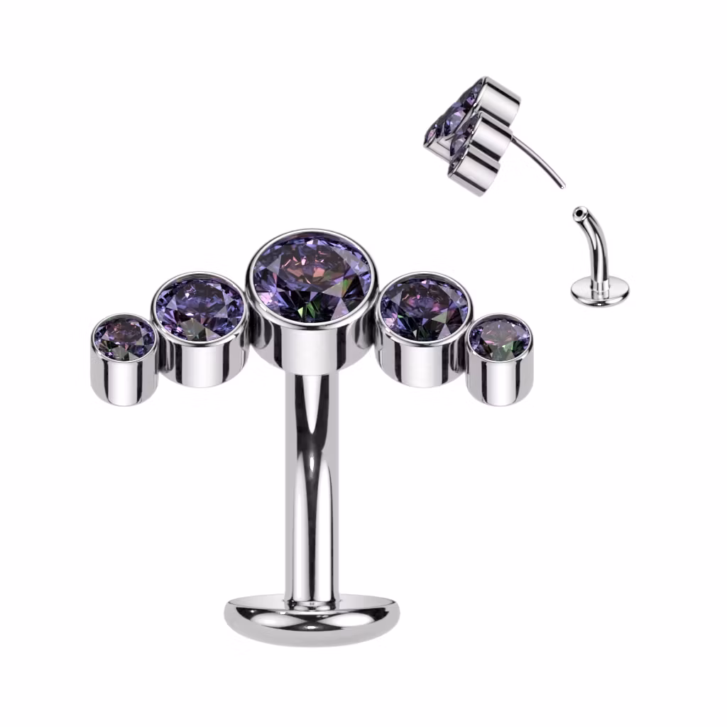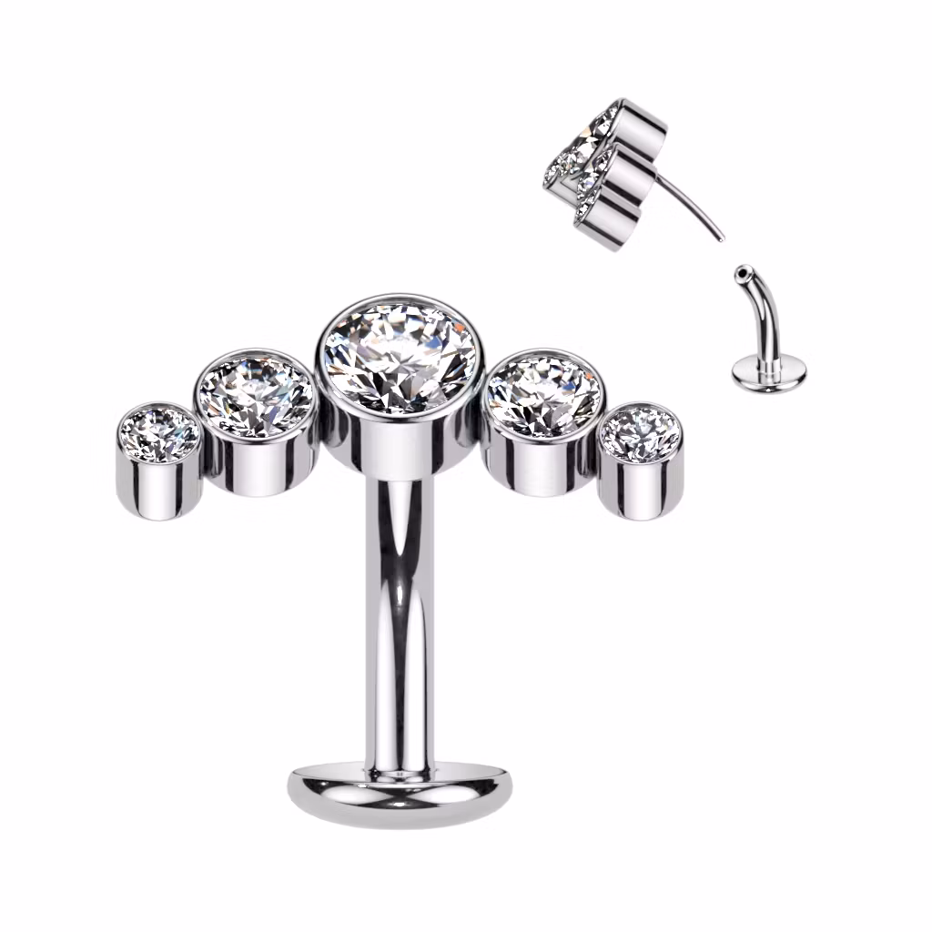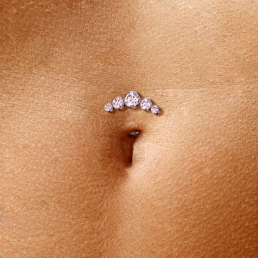 Navelsmycke "floating navel" med platt konvex 5mm botten och threadless topp med 5st kubisk zirconia.
