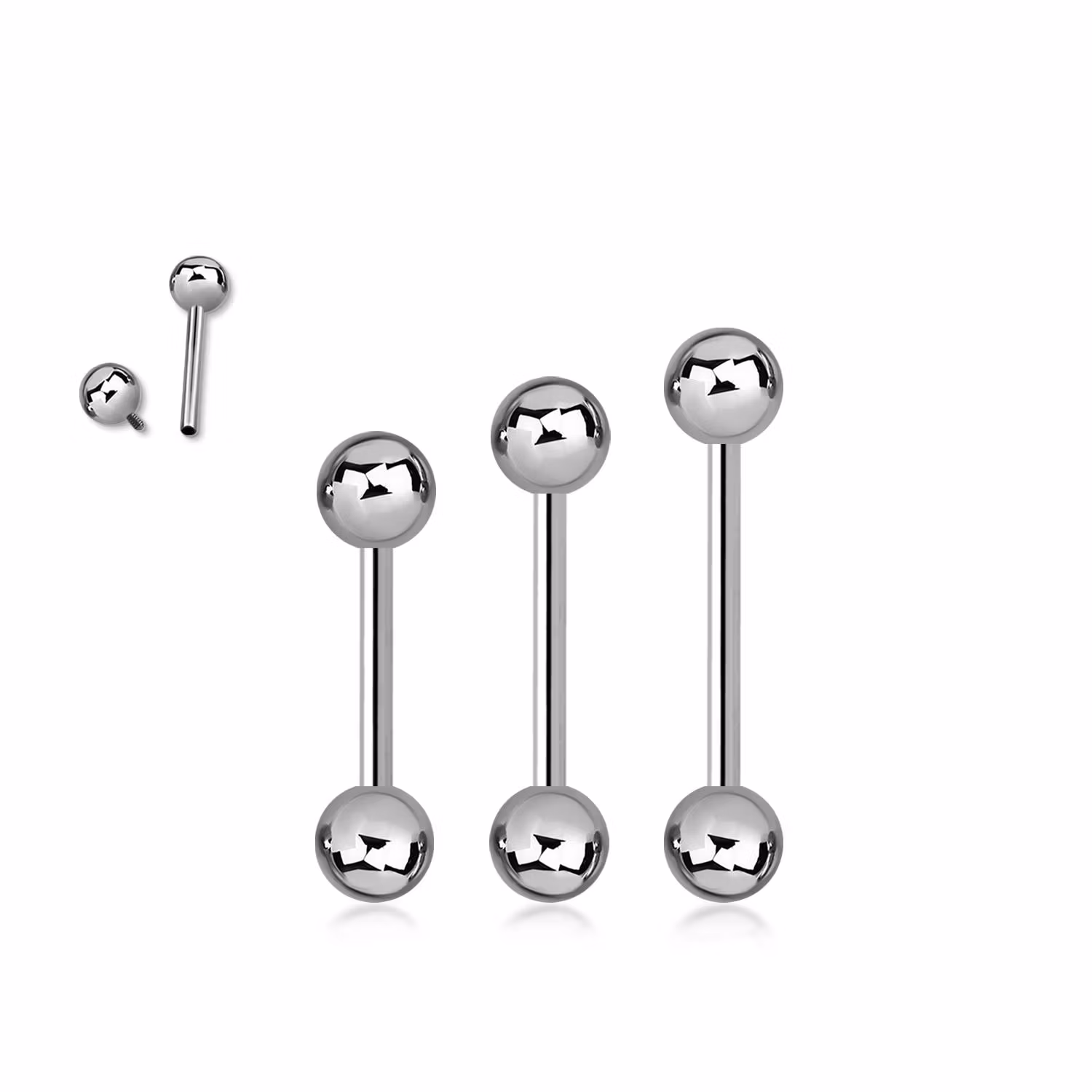 Barbell / rak stav i implantatsäker ASTM-F136 Grade 23 Titan. 14gauge - 1,6mm. 6mm kulor i vardera ände med 1,2mm gängtapp.