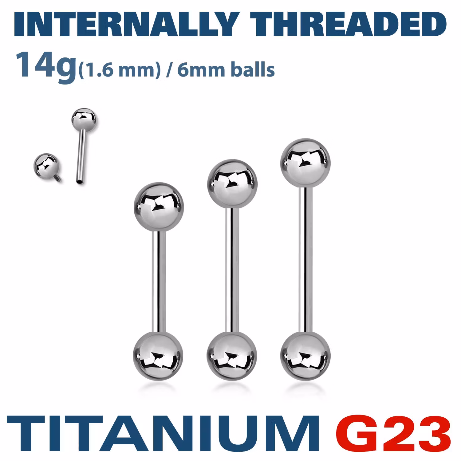 Titanium barbell 1,6mm invändigt gängad med 6mm kulor
