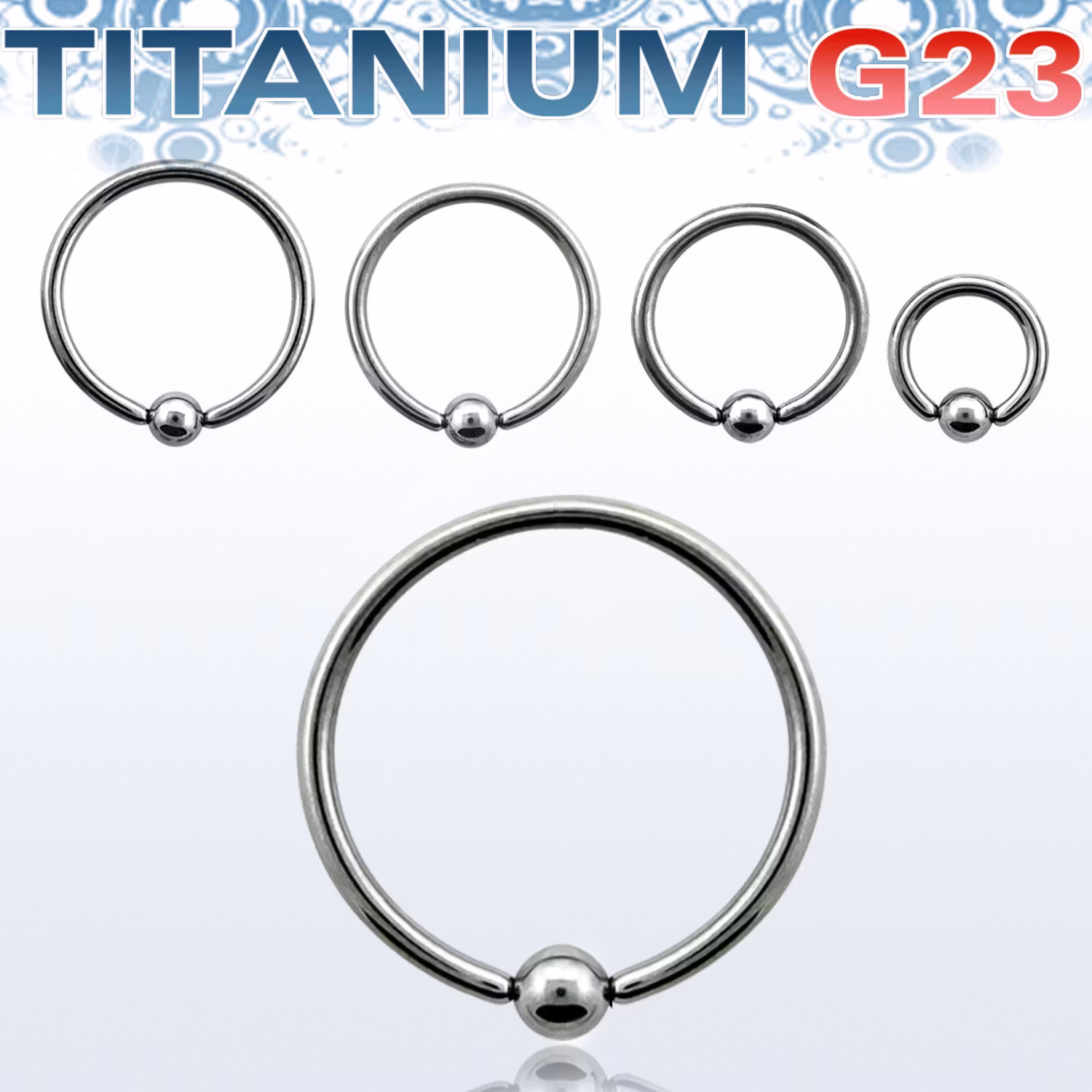 Ring med kulstängning. Solid ASTM-F136 Grade 23 Titanium vilket är ett allergisäkert material godkänt som läkepiercing eller implantat.