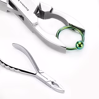 Tång / verktyg i rostfritt stål för att stänga ringar av mindre storlek.