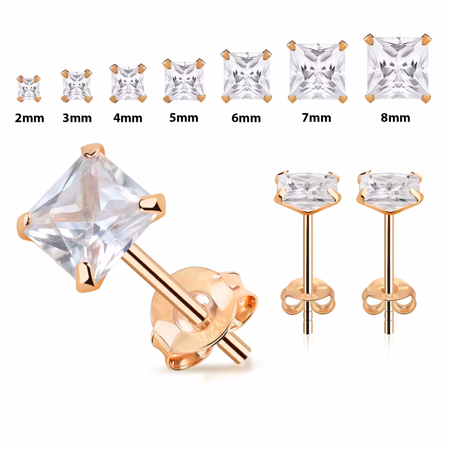 Örhänge i 925 silver med roséguldplätering - Fyrkantig kubisk zirconia (Säljes i par)