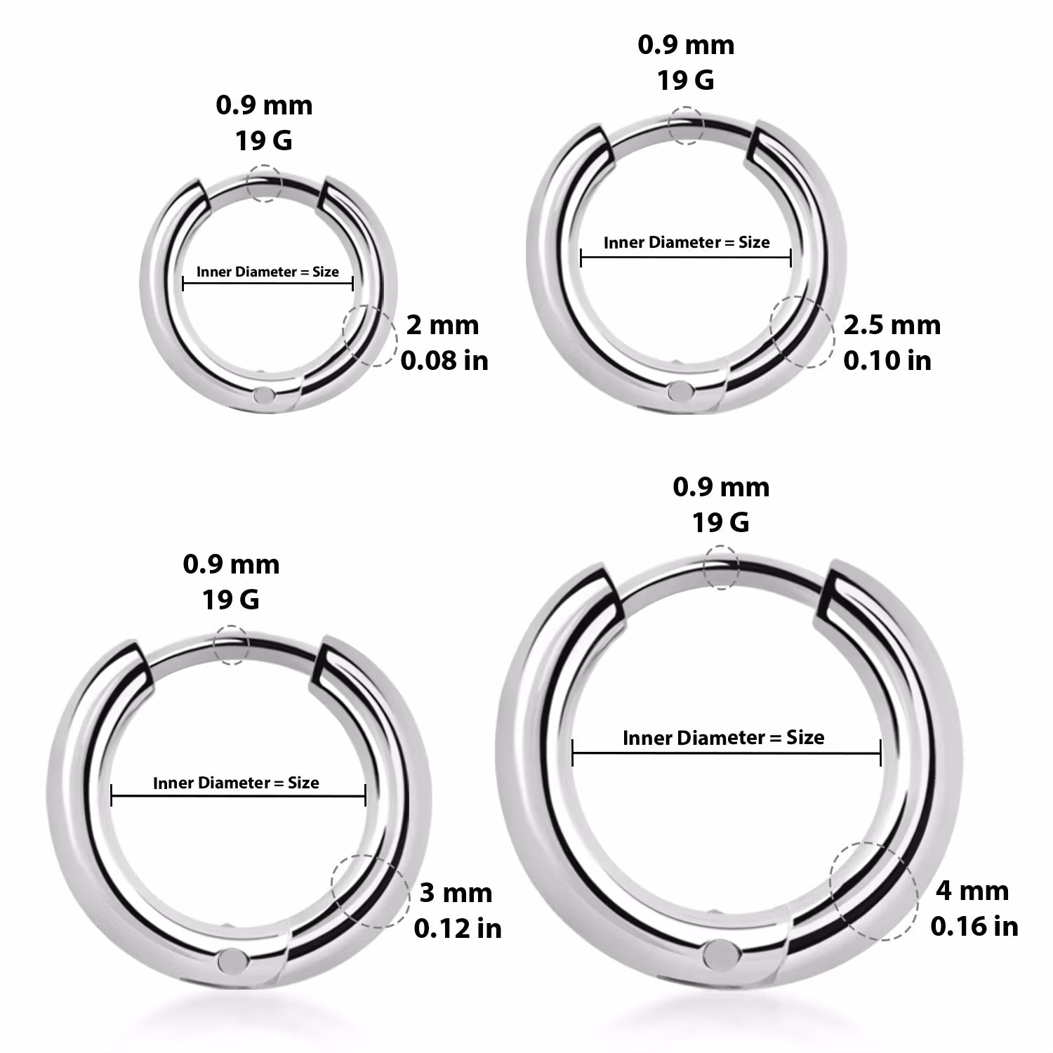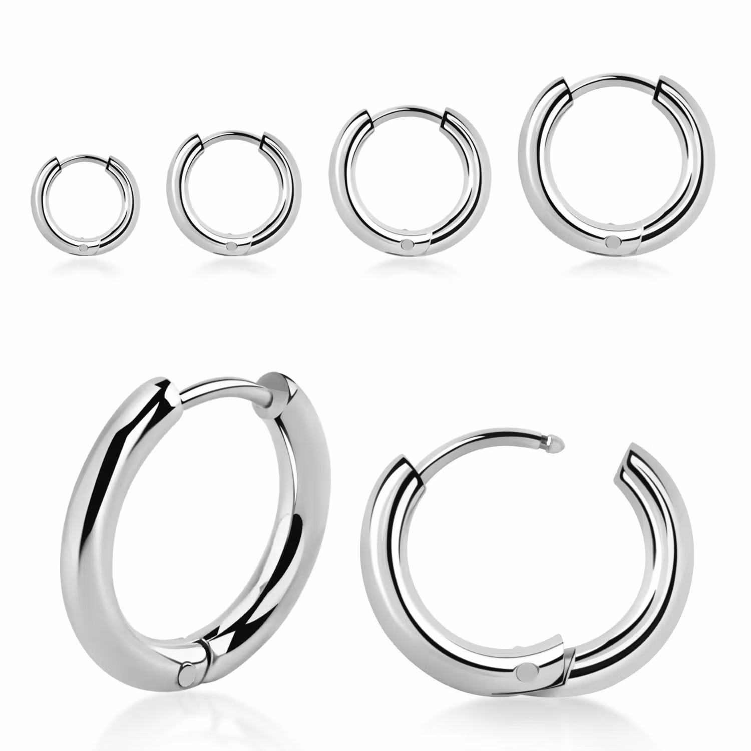 Örhänge huggies i 316L kirurgiskt stål. Säljes i par och passar i vanligt öronhål 0,9mm. Kan även användas i andra piercings i öronen.