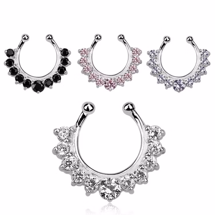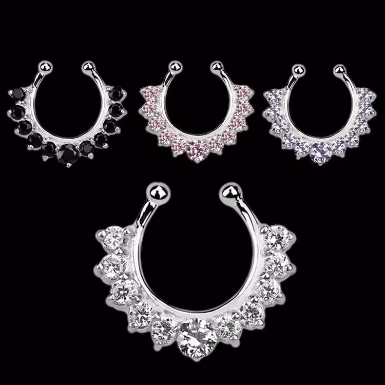 Fejk septumsmycke i 925-silver och kubisk zirconia.Kan justeras för bättre passform. Diameter ca 12mm. Ca 16mm x 15mm.