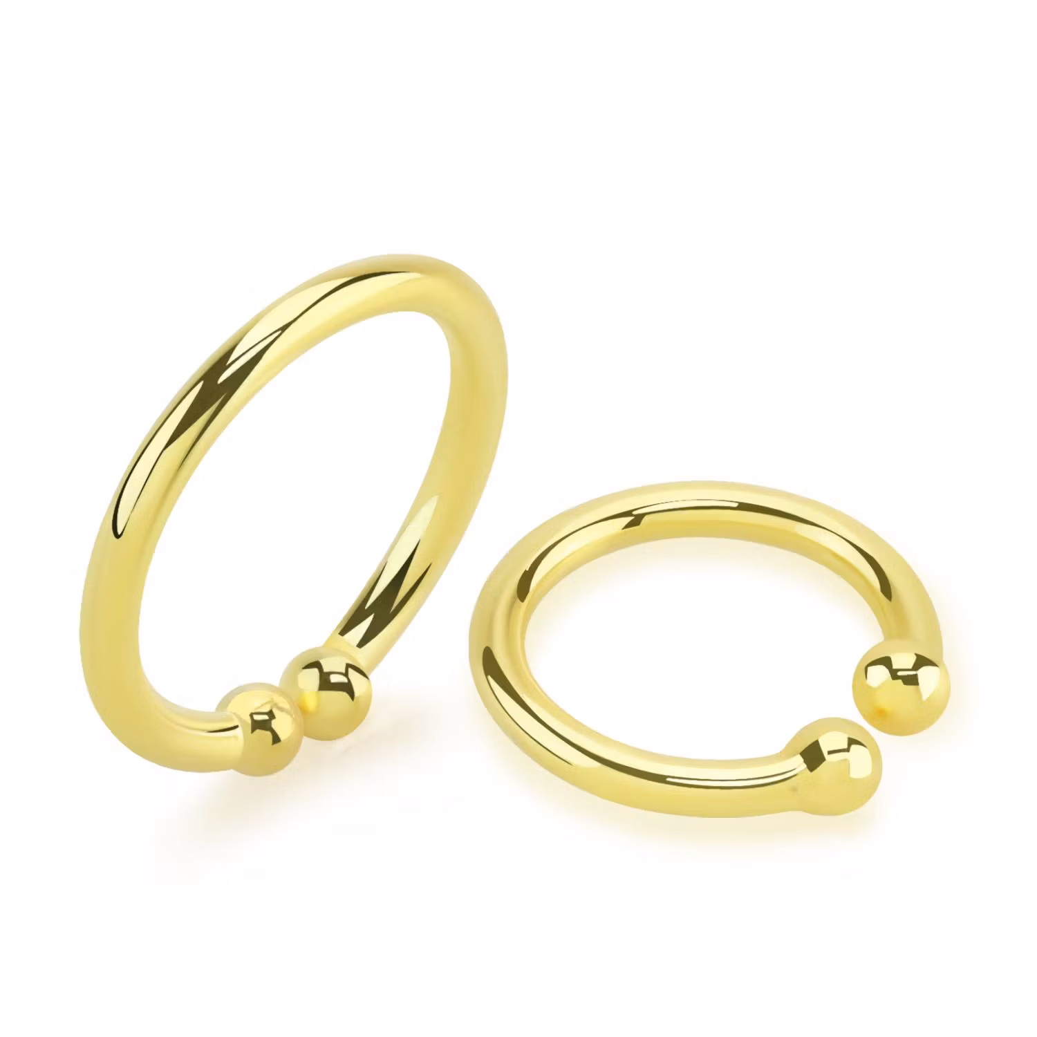 Septum fakepiercing 1mm tjock slät ring i guldpläterad 925-silver. Diameter anges som yttermått stängd ring. Du behöver inte vara piercad för att använda detta smycke.