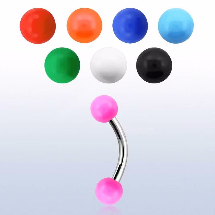 Banana i 316L Kirurgiskt stål.16gauge - 1.2mm. 8mm lång. 3mm kulor i solid färgad akrylplast.