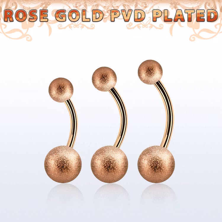 Banana / navelsmycke i PVD-pläterad 316L kirurgiskt stål.1.6mm (14gauge) 5mm och 8mm kula med frostad effekt.