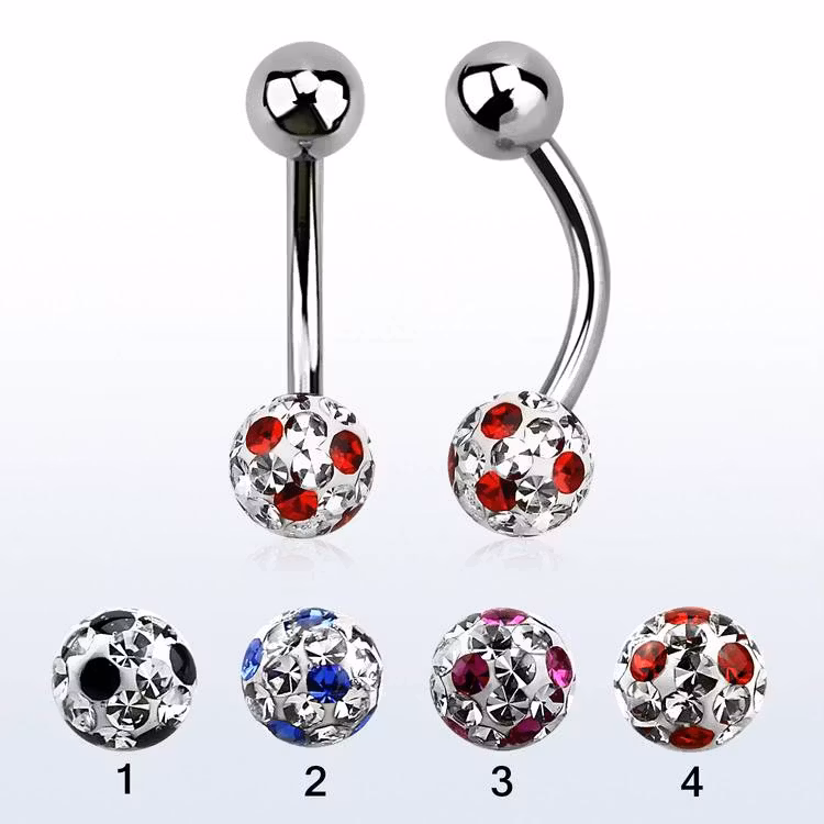 Navelsmycke i 316L Kirurgiskt stål.14gauge - 1.6mm.5mm stålkula. 6mm feridoboll.Stenarna är täckta med ett starkt lim.
